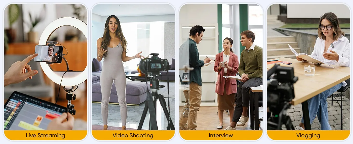 All of the transmitters and receiver are equipped with universal USB-C charging ports, which support charging while recording, fully meeting the power needs in long time recordings.