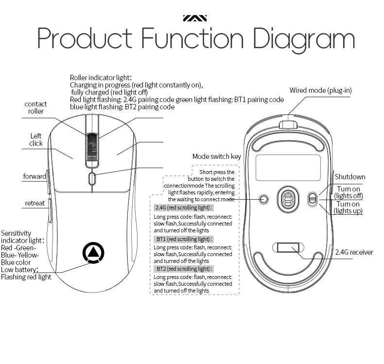 Lightweight Wireless Gaming Mouse with 3 Mode Wired 2.4G BT for Laptop Deskbtop