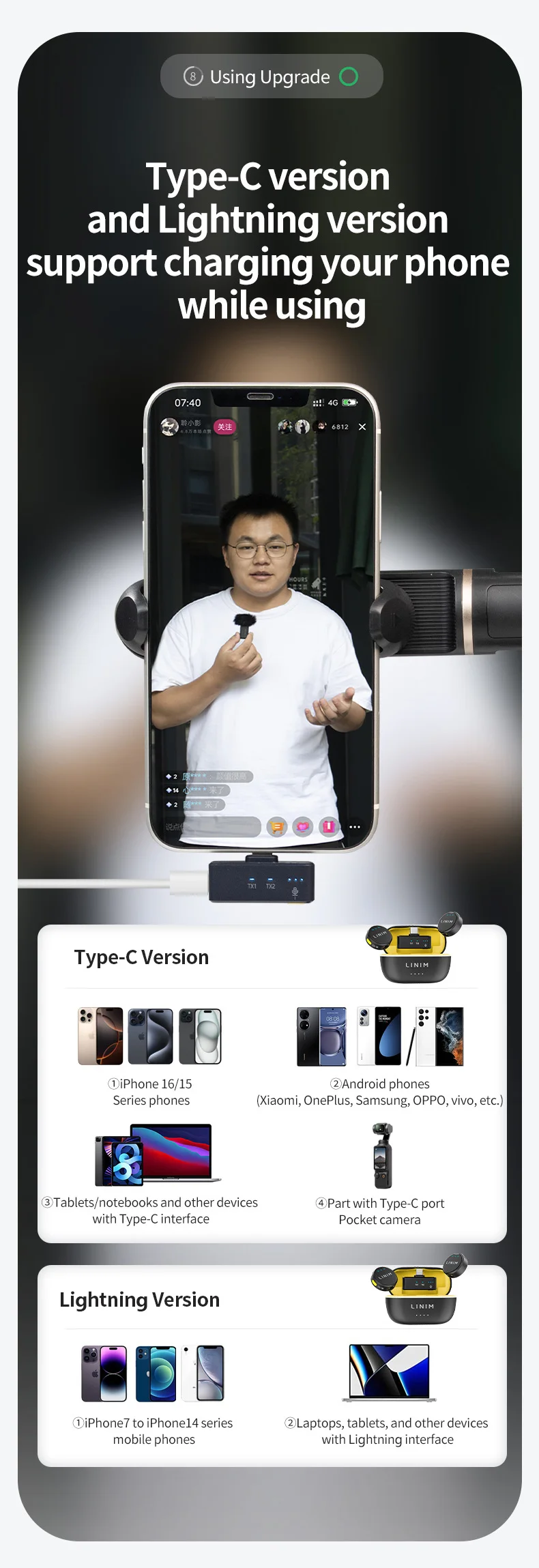 *Lightning & Type-C version, RX needs to be plugged into the phone to use, and it will automatically pair after RX is plugged into the phone.