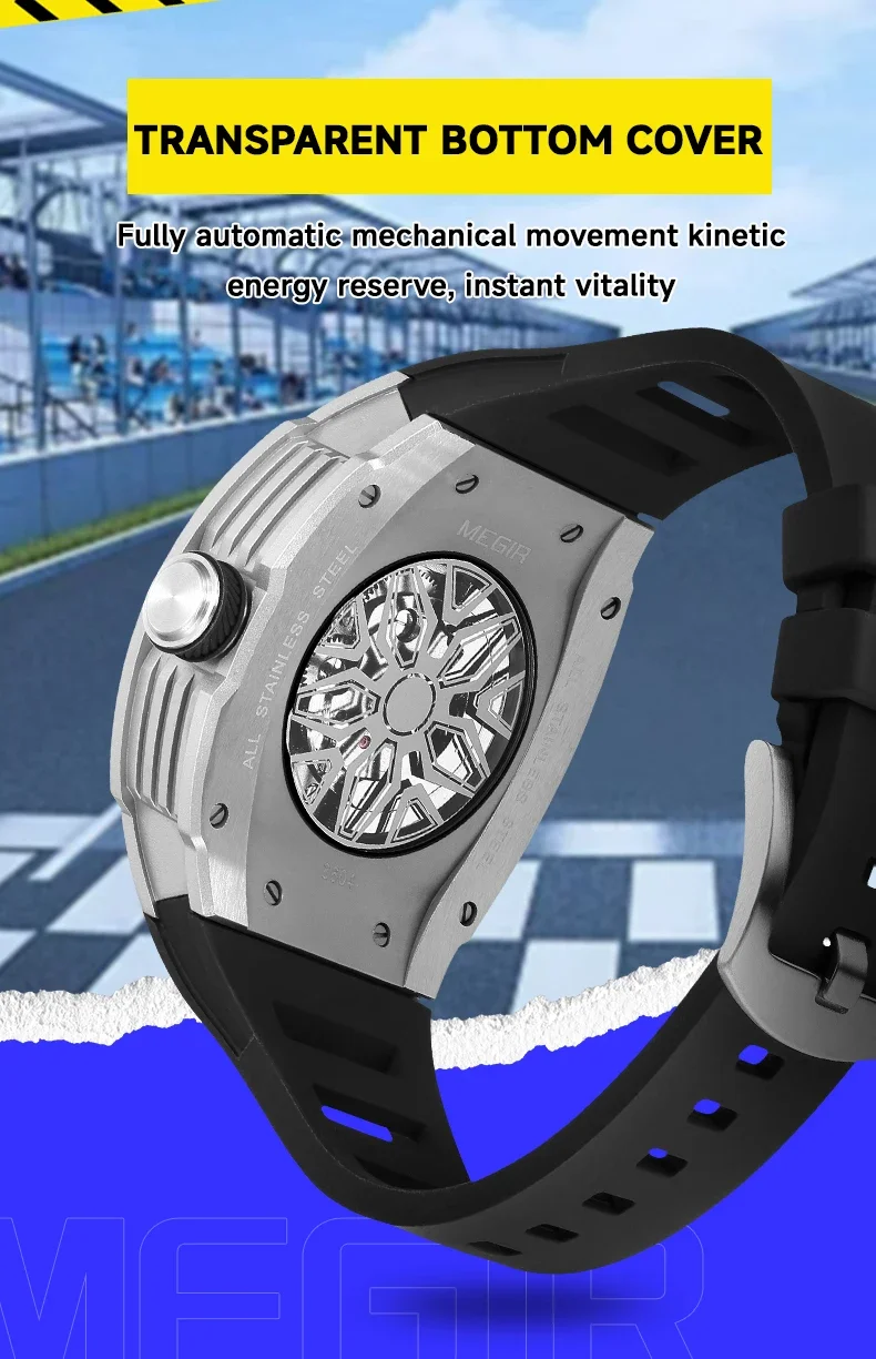 MEGIR 8604 Men's Wine Barrel Automatic Mechanical Watch Fashion and Leisure Silicone Strap Fashion Night Light Watches for Man