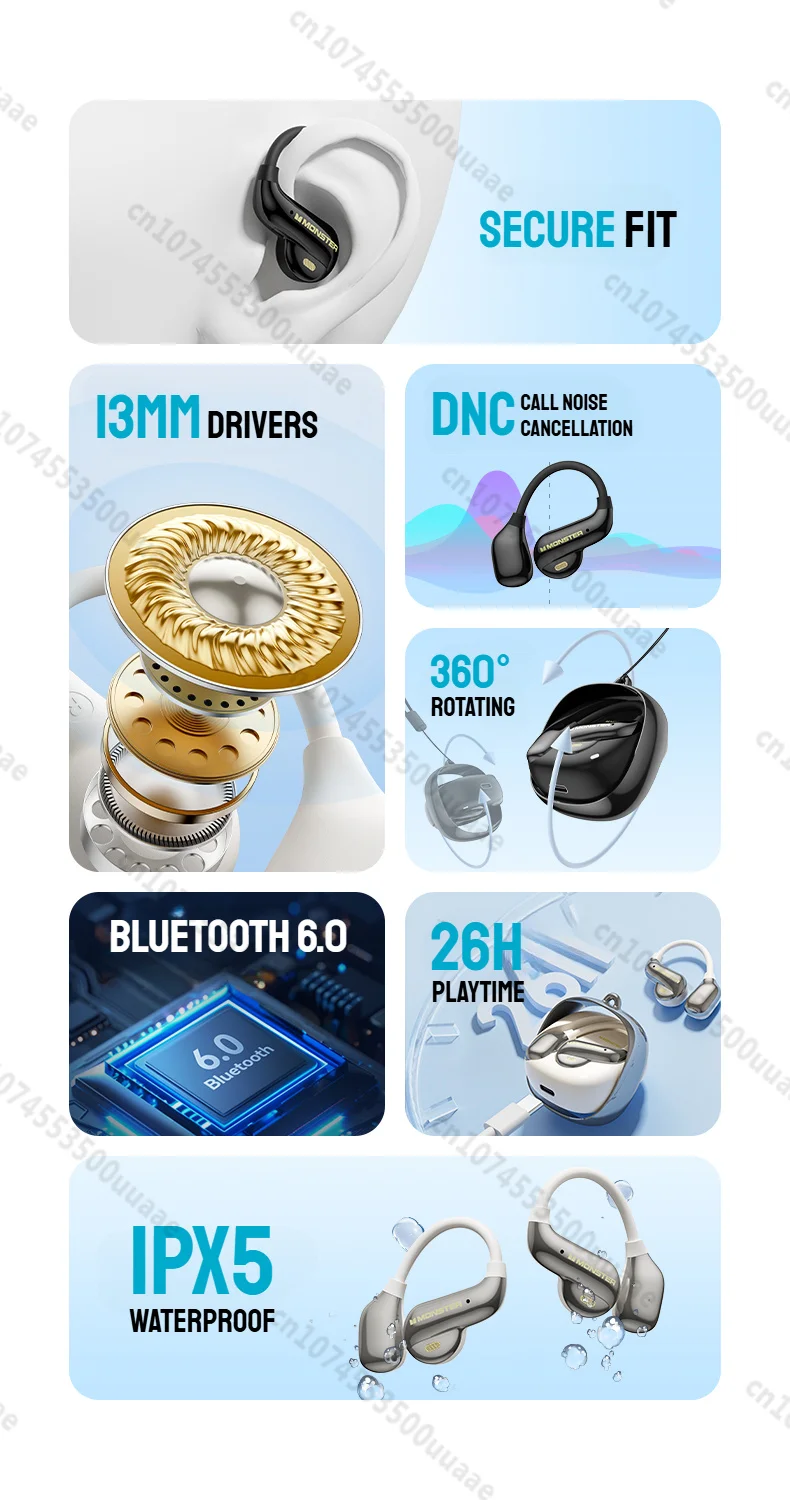 [ Be Aware of Surrounding ] Since open ear headphones don't go into your ears, they can make you more aware of your surroundings. When you listen to music while running or cycling outdoors, you can still hear approaching cars or other potential hazards and go through the day with safety.