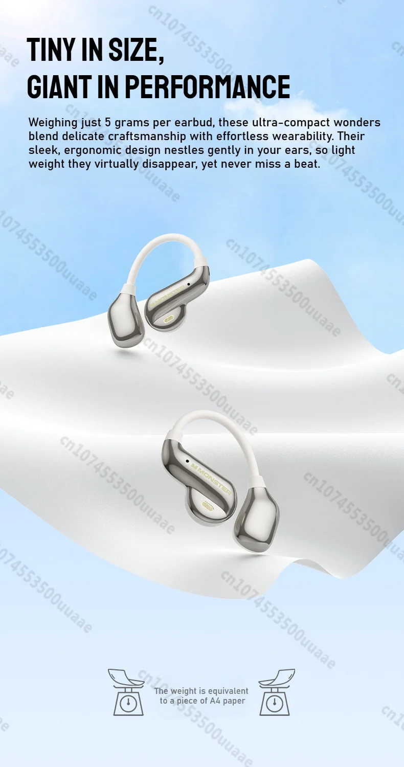 [ True Open Ear Headphones ] Monster Open Ear AC390 headphones adopt a completely open design, the earbuds can be gently and firmly placed on the top of the ear. Open ear earbuds are typically lighter and more breathable than in-ear headphones, making them more comfortable to wear for extended periods of time.