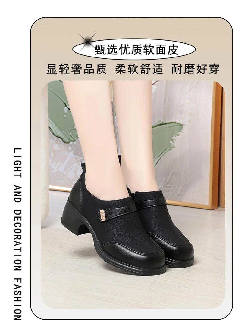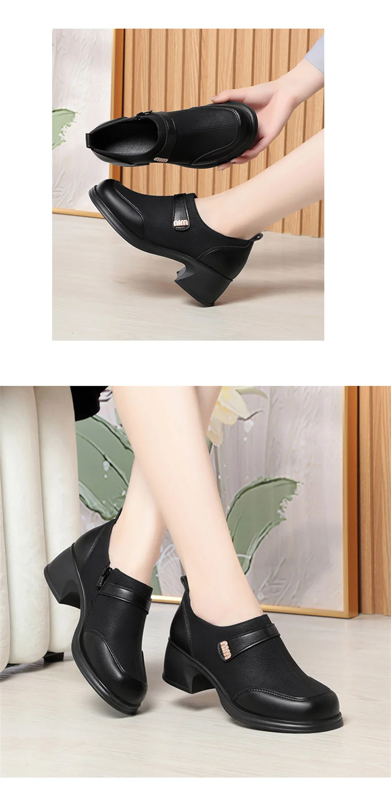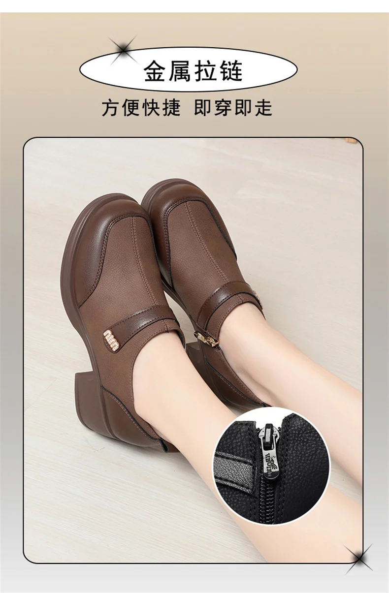 2024 New Slip On Spring Soft Shoes Woman Vintage Ladies Dress Pumps Thick High Heels Platform Shoes Retro Brown Daily Mom