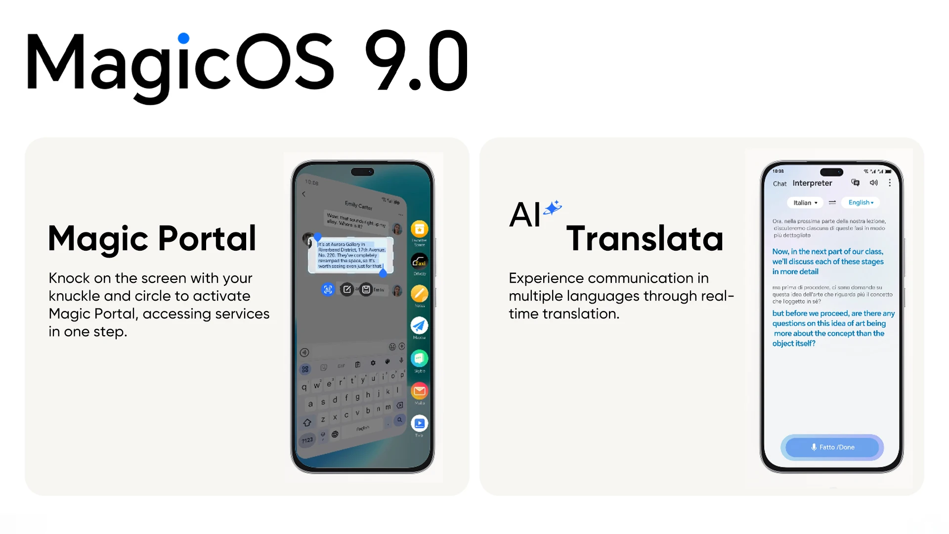 OS --- MagicOS 9.0 (based on Android 15), User Interface: MagicOS 9.0