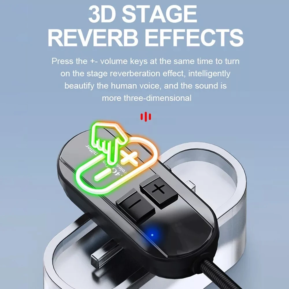 The wireless headset microphone for singing can be used in two ways: as a general headset microphone, or remove the head bracket and it will become a handheld microphone. Press the "+" and "-" volume keys of the head microphone wireless at the same time to turn on the stage reverb effect, which can intelligently beautify your voice and make the sound more three-dimensional.