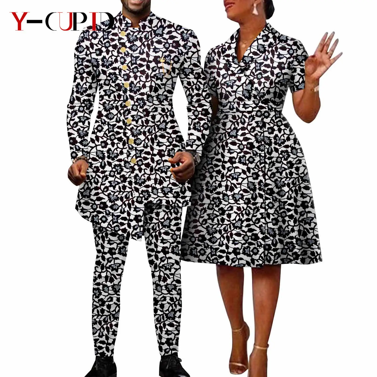African Suits for Men Single Breasted Fit Jackets Matching Couple Outfits Bazin Riche Dashiki Print Dresses Trench Coats Y23C007