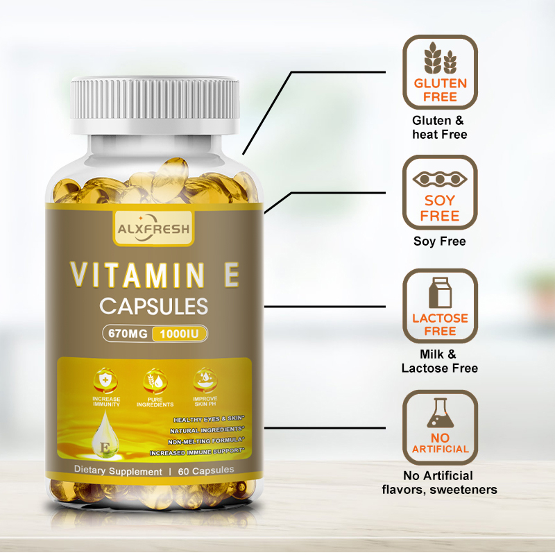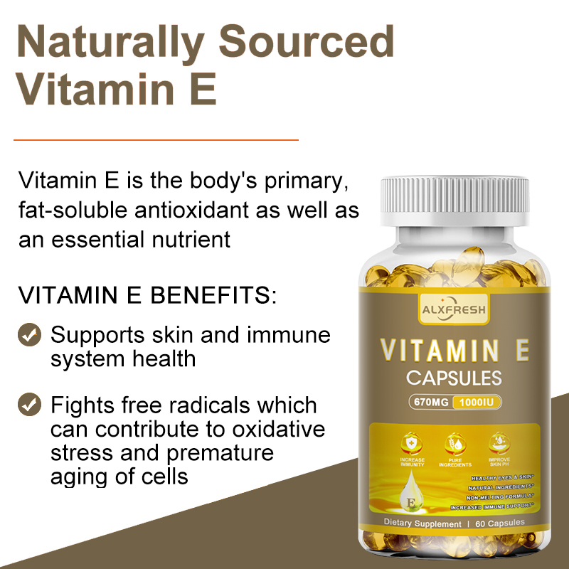 ✔️ Powerful Antioxidant:Vitamin E is the body's primary, fat-soluble antioxidant; As an antioxidant, it helps fight cell-damaging free radicals; Free radicals can cause oxidative stress in the body, which may contribute to the premature aging of cellsPowerful Benefits: A potent antioxidant and anti-aging nutrient, vitamin E benefits the whole body, supporting memory, heart, liver, & eye health. As well as healthy skin, hair, nails, and a glowing face.