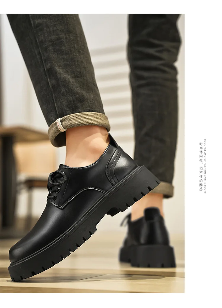 Autumn 2025 New Men's Business Derby Shoes Black Leather Loafers for Men Chef Shoes Men's Korean Platform Formal Dress Footwear