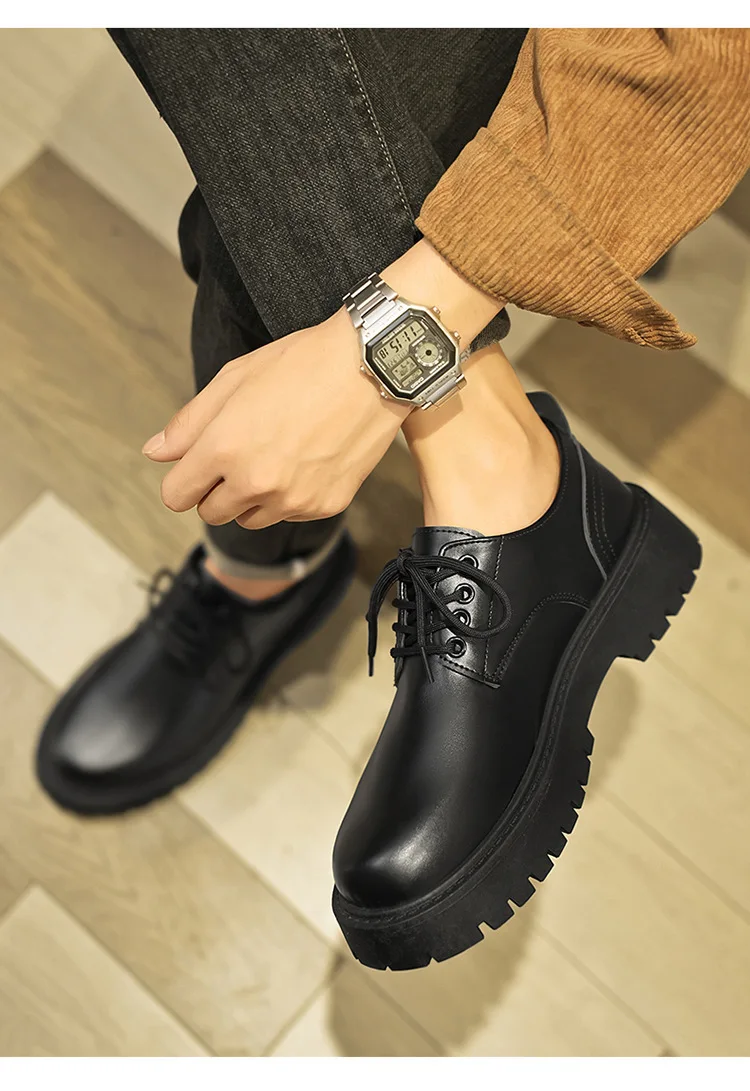 Autumn 2025 New Men's Business Derby Shoes Black Leather Loafers for Men Chef Shoes Men's Korean Platform Formal Dress Footwear