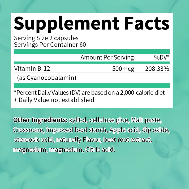 Vitamin B12 supports brain cell function, helps reduce fatigue for those low in B12, and is important for vegetarians and vegans who may not consume enough B12 from diet alone.+