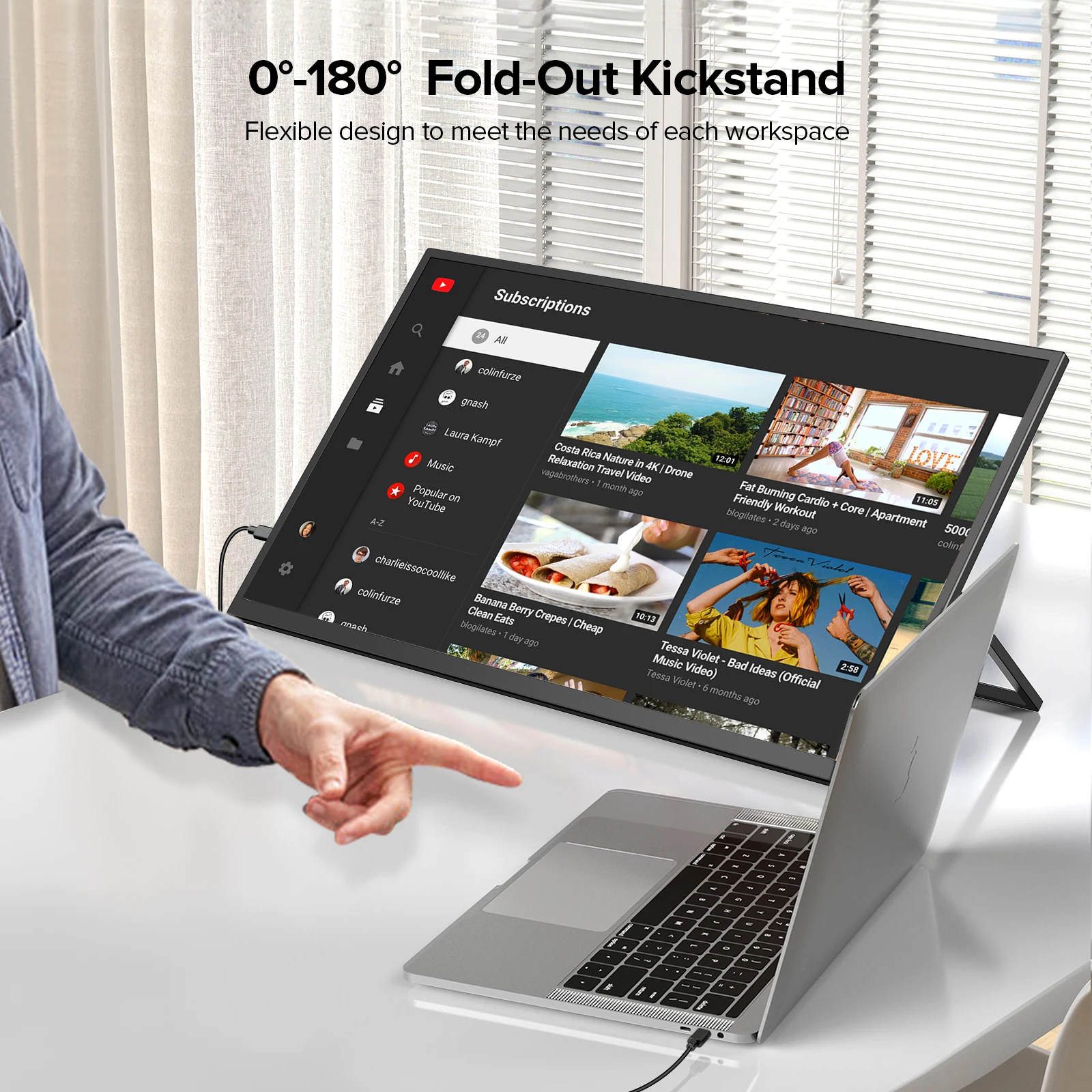 【Frameless, Ultra-Slim and Portable】 Compared to traditional bulky computer monitors, this large portable monitor achieves a perfect balance between screen size and portability.Its narrow frame and extremely lightweight design make it easy to carry in your backpack, allowing you to carry it effortlessly, making it very portable! Whether you are in the office, coffee shop, friend's home, or on the go, the portable laptop monitor can be easily removed from your bag and enjoyed as a second or dual screen anytime, anywhere, improving work efficiency and adding entertainment to your life, making it the ideal travel companion for laptops and phones.