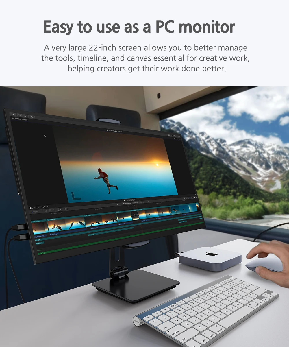 【Large Screen and 2 Build-in Speakers】21.5" large portable monitor offers an expansive viewing area, but still portable. The bigger size of the ultra-wide portable monitor provides unmatched visual experience for your business, work, gaming, and travel. Our 21.5" large portable monitor with 2 high quanlity build-in speakers help to enhance both office productivity and gaming immersion.