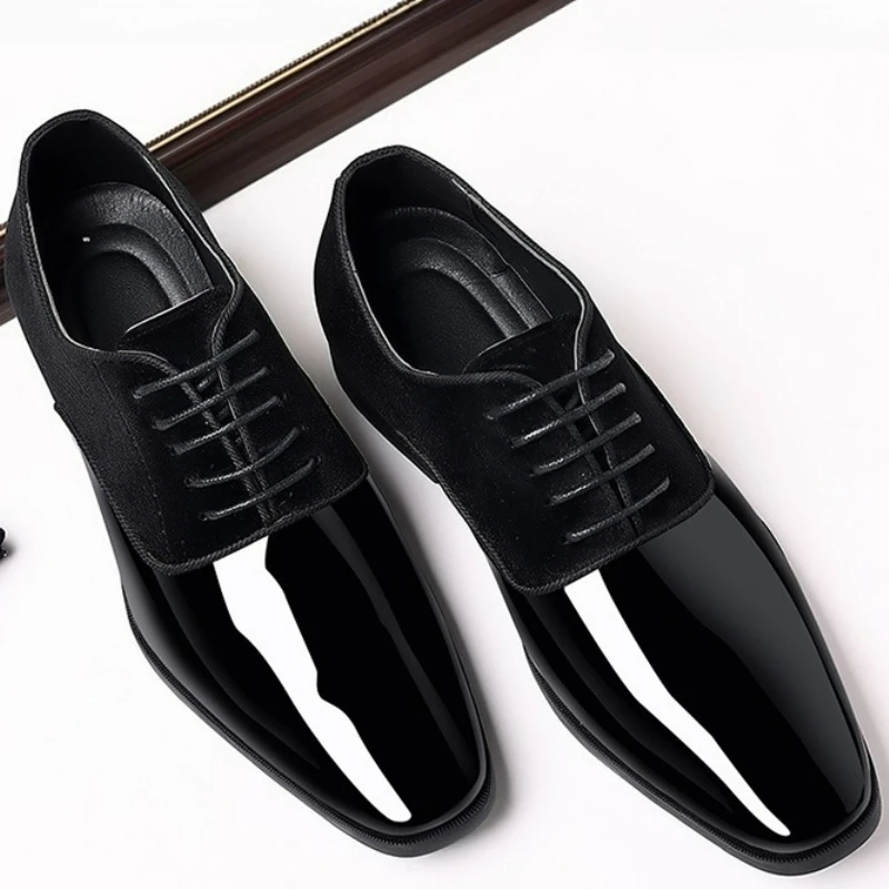 2025 Classic Patent Leather Shoes for Men Casual Business Shoes Lace Up Formal Office Work Shoes for Male Party Wedding Oxfords