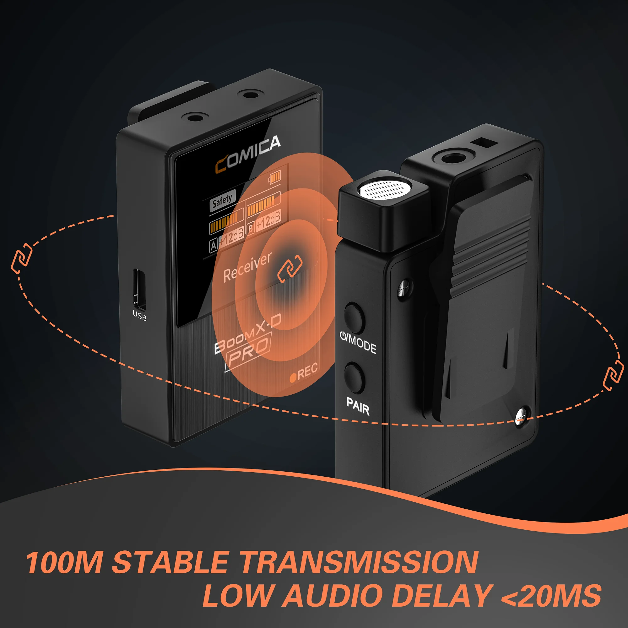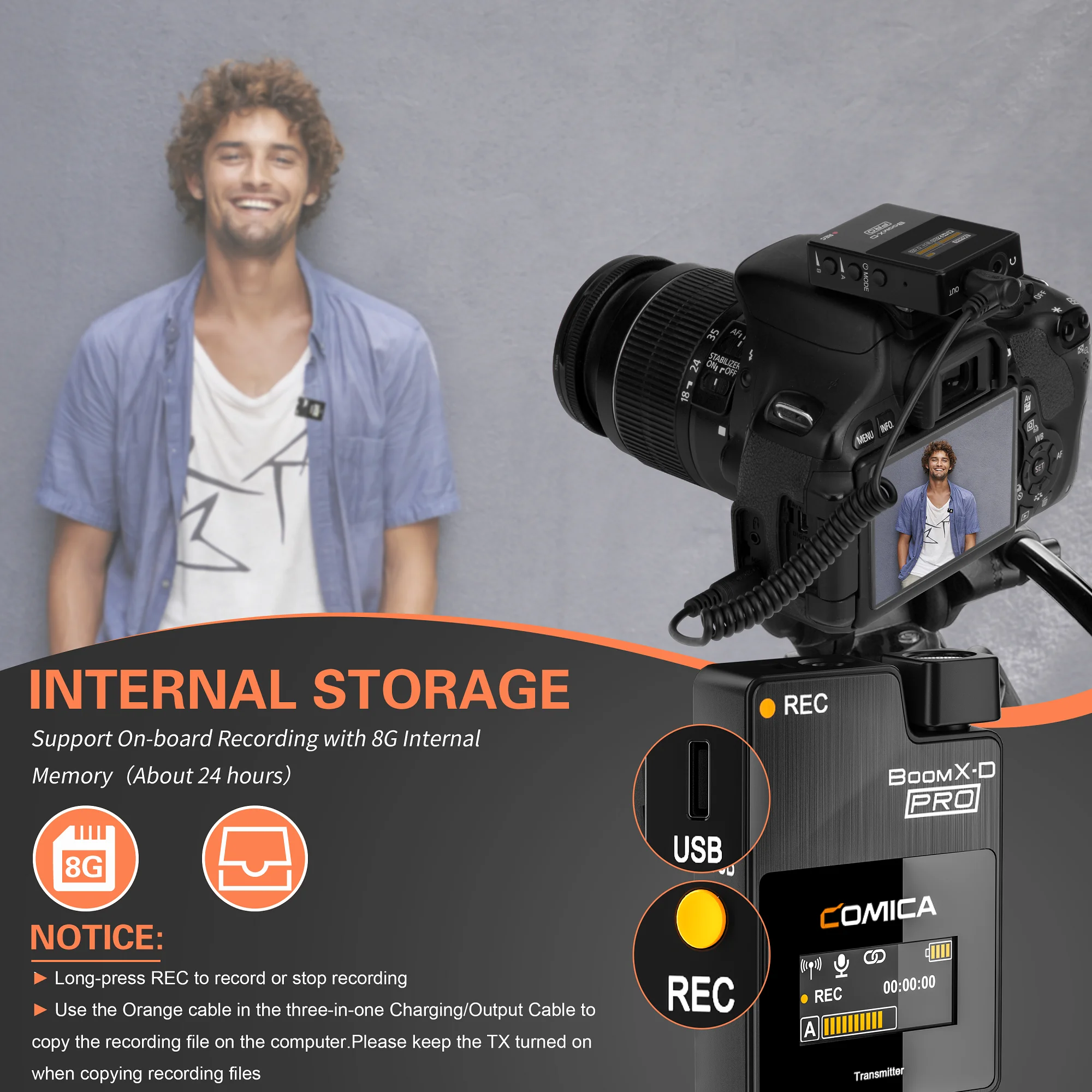 The transmitter of BoomX-D PRO comes with 8G built-in storage, no additional memory card is required, and can store up to 24 hours of recording files, which can be used directly as a voice recorder, or can be used as a recording pen. In case of unexpected situations such as interference, it provides the protection of recording backup.