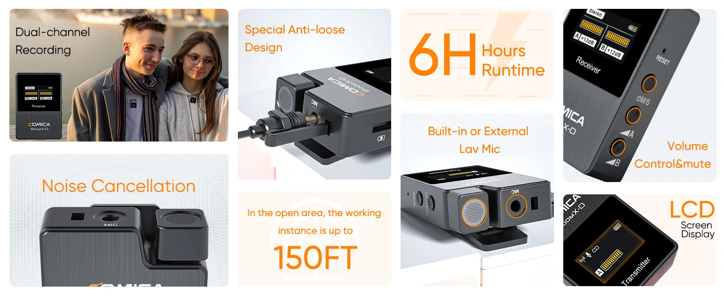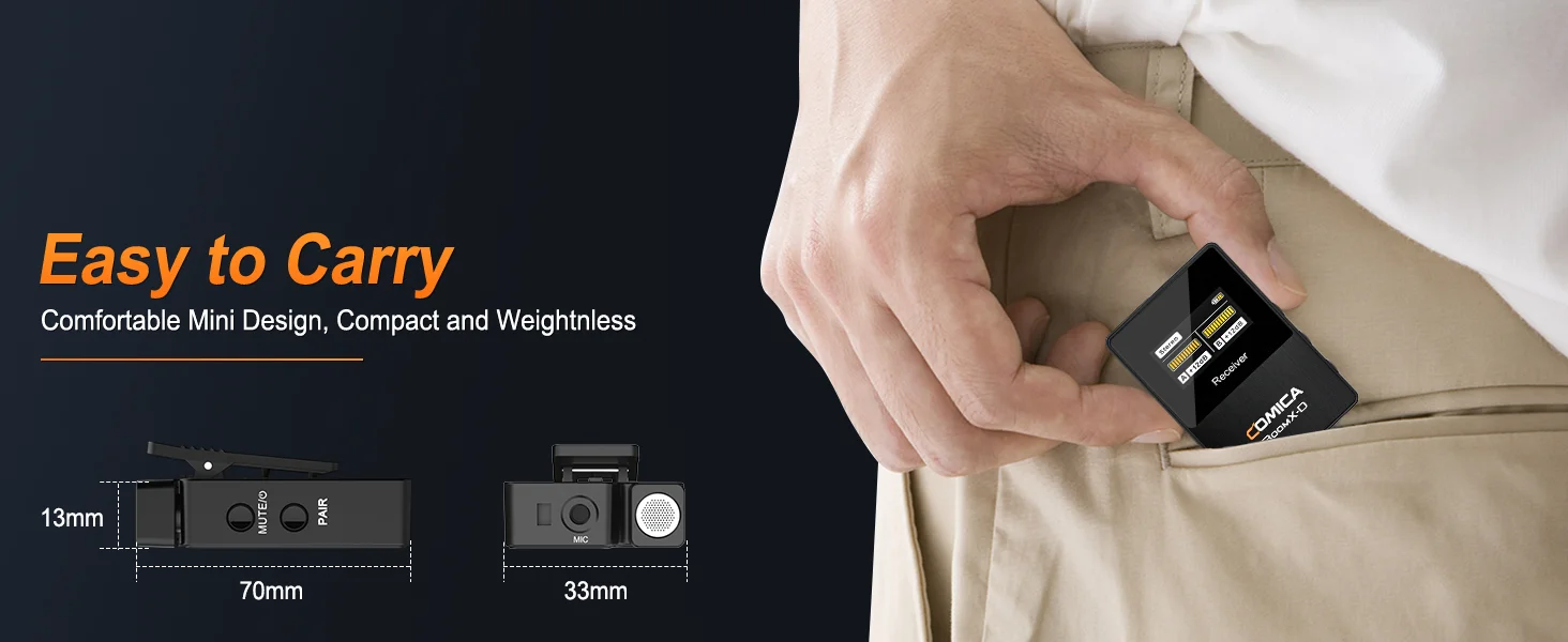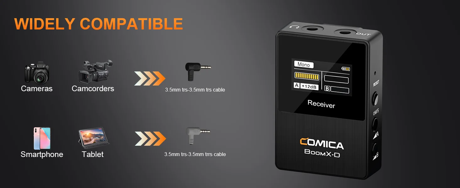 For iPhone users, connect the 3.5mm to Lightning adapter with OTG to the receiver.(It is highly recommended to use the CVM-D-MI audio output cable from COMICA.)