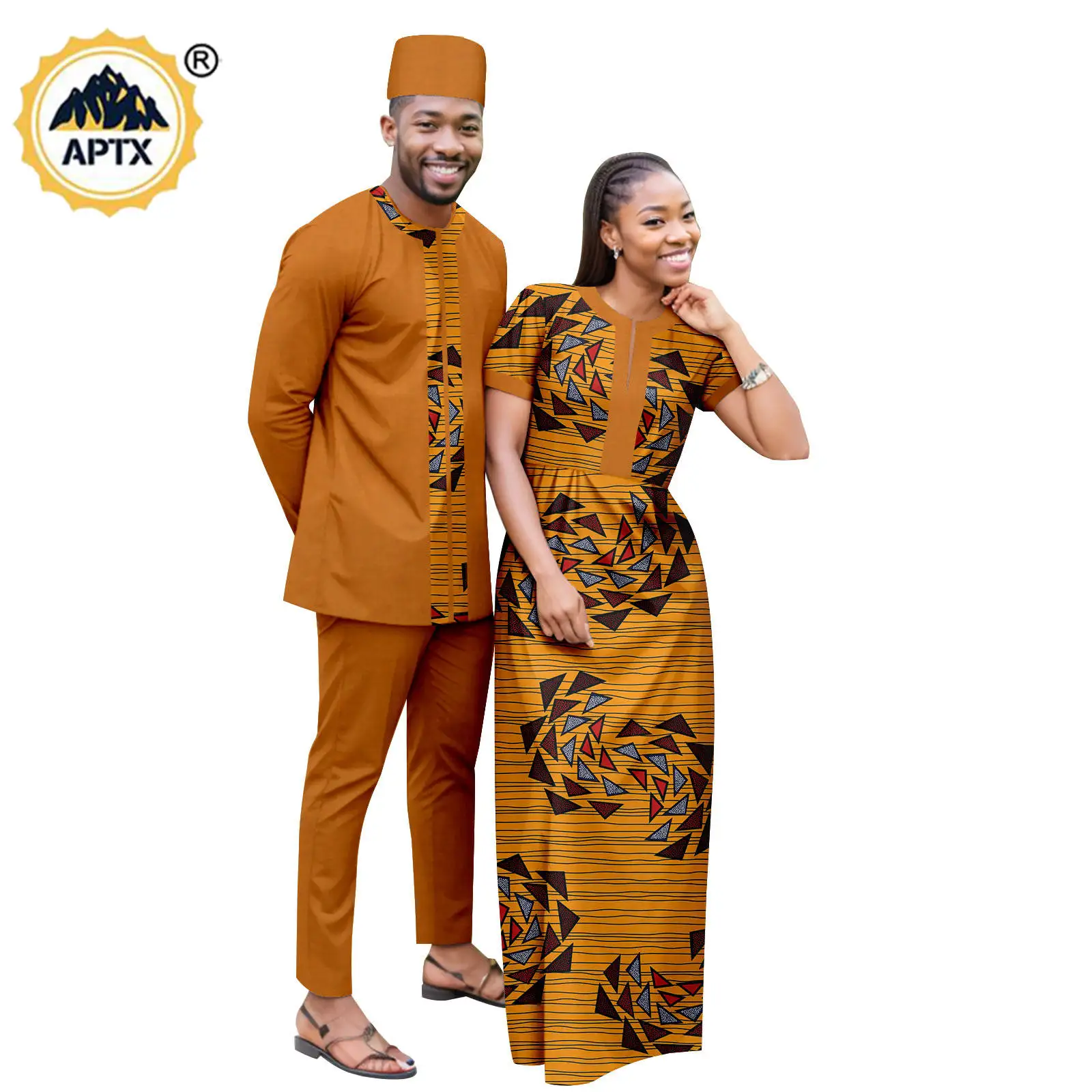 Dashiki African Clothes Print Long Dresses for Women Matching Couple Outfits Bazin Riche Men Hat Top Tee and Pant Sets Y23C119