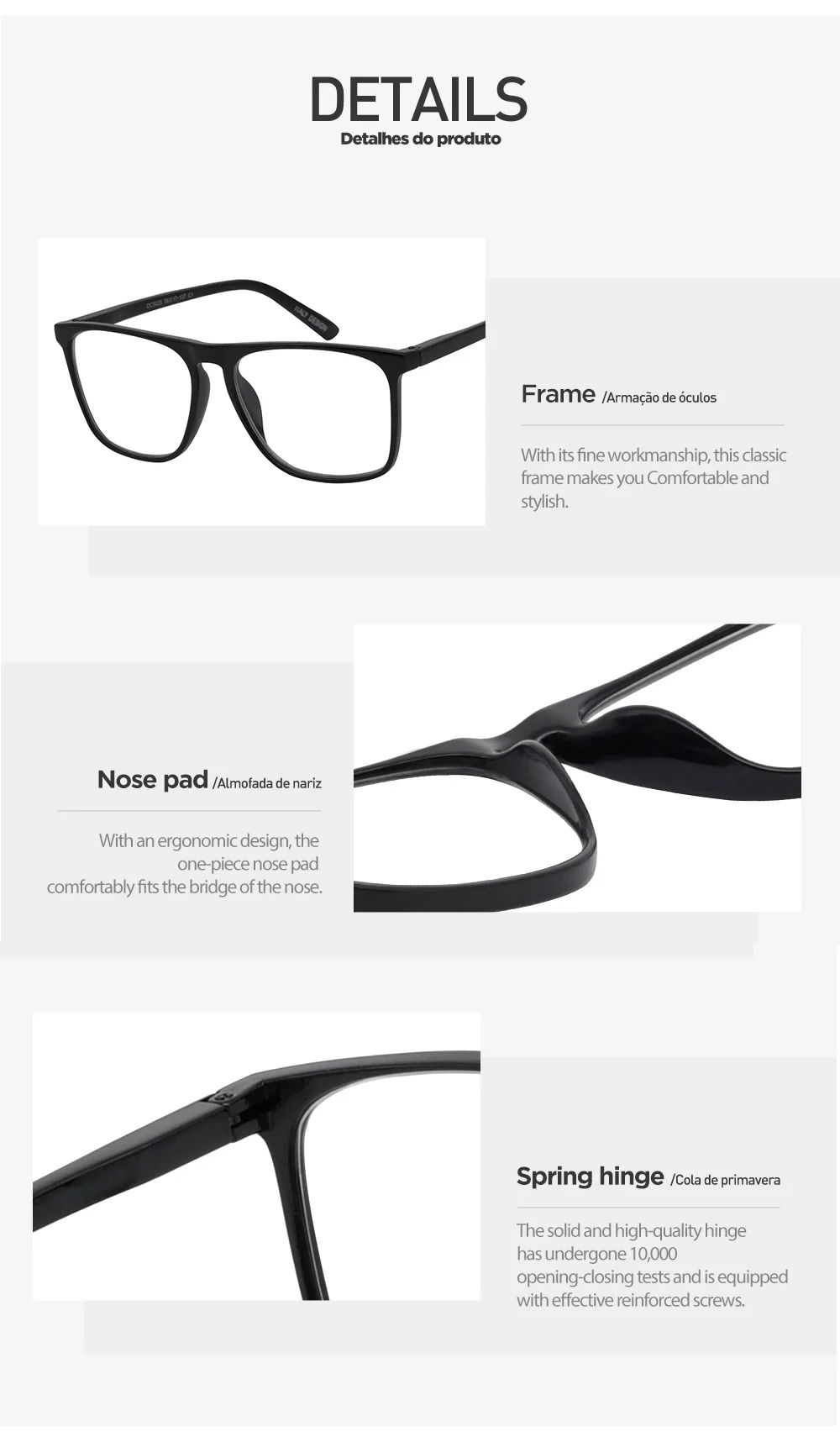 Eyeglasses Reading Glasses Men Anti Glare Computer Glasses Frame Large Square Blue Light Presbyopia +1.0 To+4.0 5025 MARE AZZURO