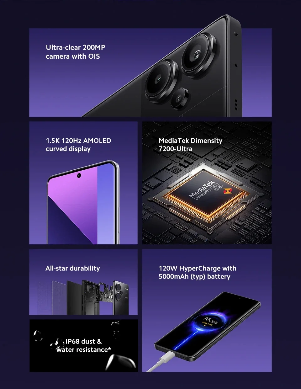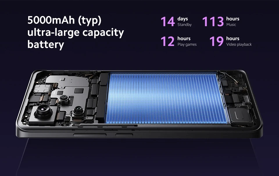 Battery --------- 5000mAh (typ) ultra-large capacity battery,120W HyperCharge