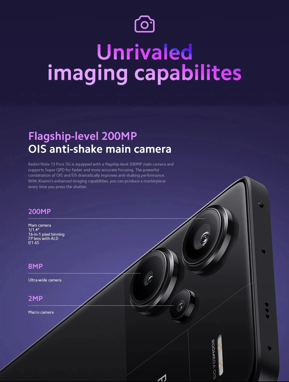 Camera --------200MP+8MP+2MP triple camera, 16MP Front Camera