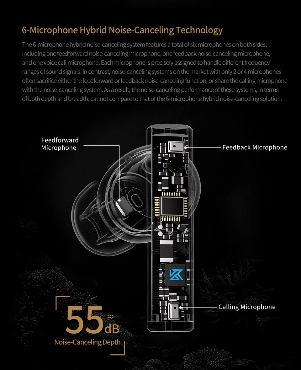 KZ Carol ANC True Wireless TWS Bluetooth 5.3 Earphone 6 Mics Active Noise Canceling in-Ear waterproof Stereo Earbuds