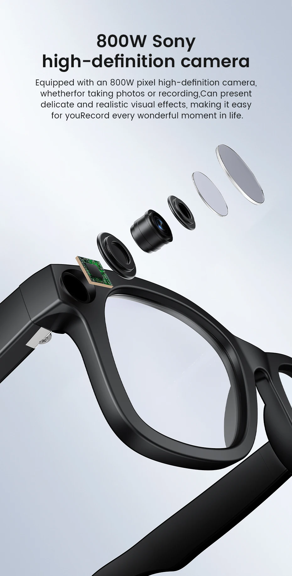 LIGE 800W Pixel Intelligent Glasses 1080P HD Shooting Video Recording Voice Assistant Call AI Translation Smart Sunglasses Lens