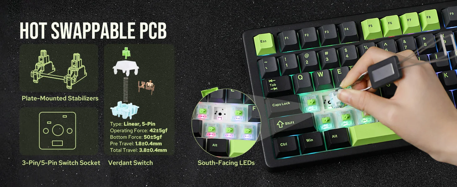 Customize your typing experience effortlessly with the Blade75’s hotswappable PCB, which allows for easy switch replacements without any soldering required. This hot swappable keyboard is equipped with south-facing RGB backlighting, creating vibrant and adjustable lighting that boosts its visual allure. Moreover, its design supports a variety of keycap profiles, facilitating an enjoyable user experience.