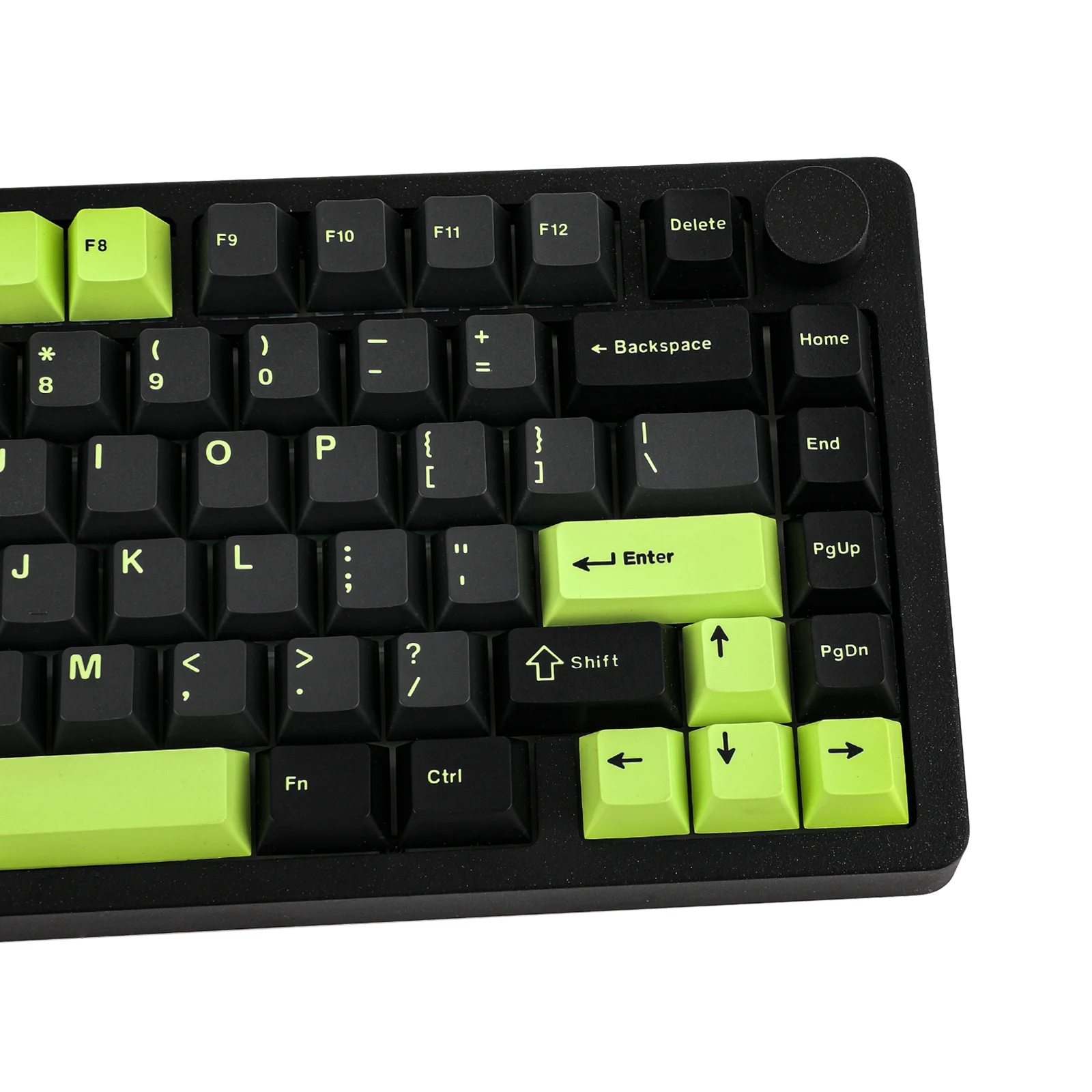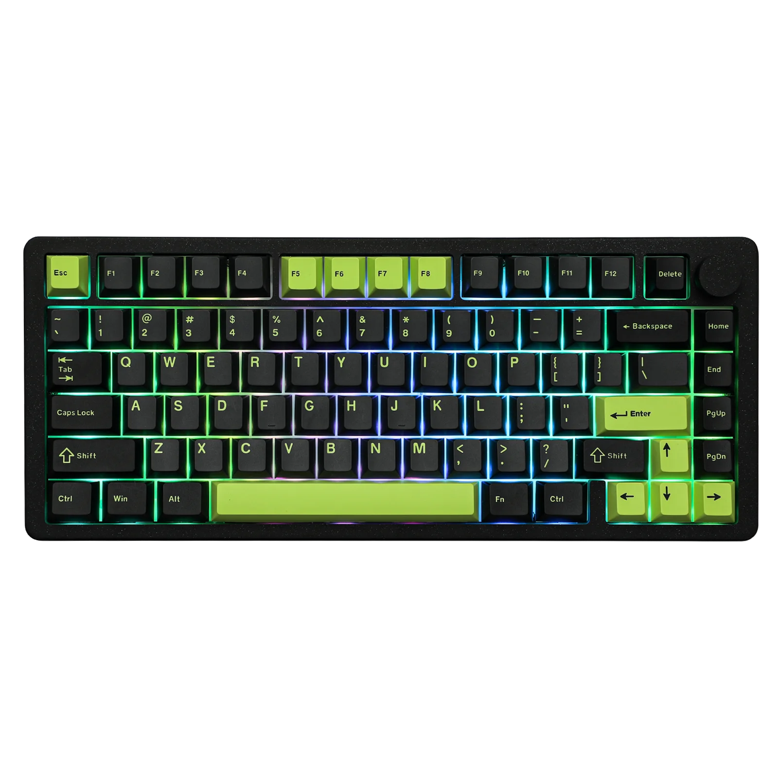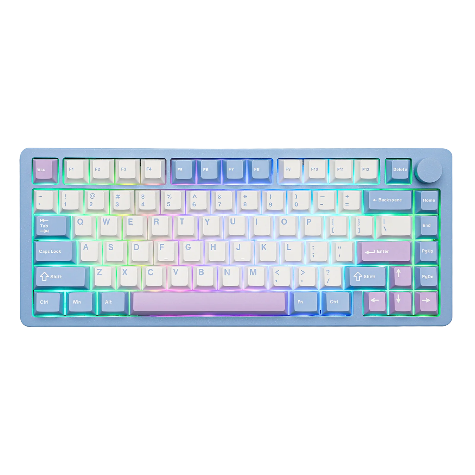 The Blade75 features a 75% layout that includes 81 keys and a knob, achieving an ideal mix of space-saving design and functionality. It ensures that all essential keys are included while minimizing the keyboard's size for better ergonomics. In addition, there's a metal knob positioned at the top right that enables simple and effortless control of media functions.