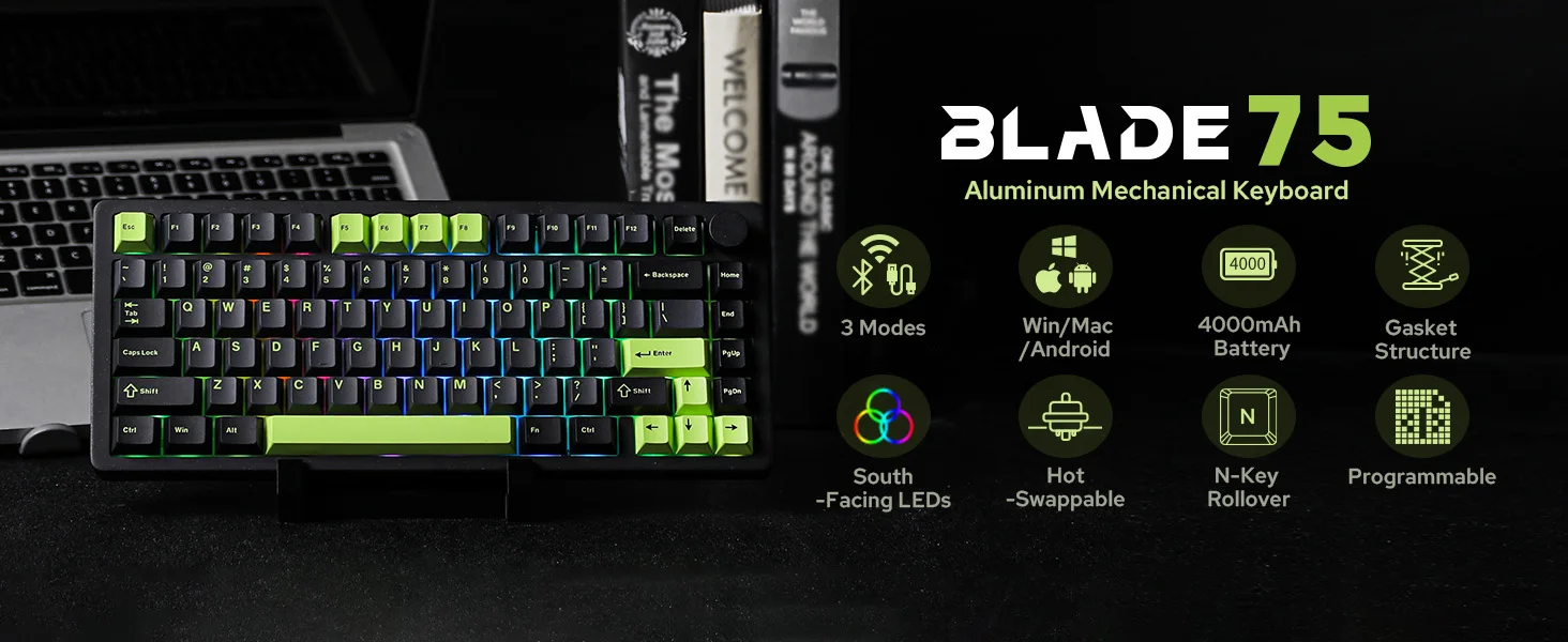 MechLands Blade75 Hot-Swap Gasket Wireless BT5.0/2.4GHz/USB-C Wired Aluminum Mechanical Gaming Keyboard for Win/Mac/Games/Office