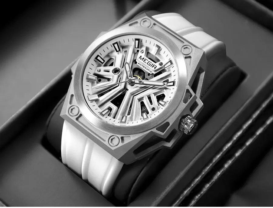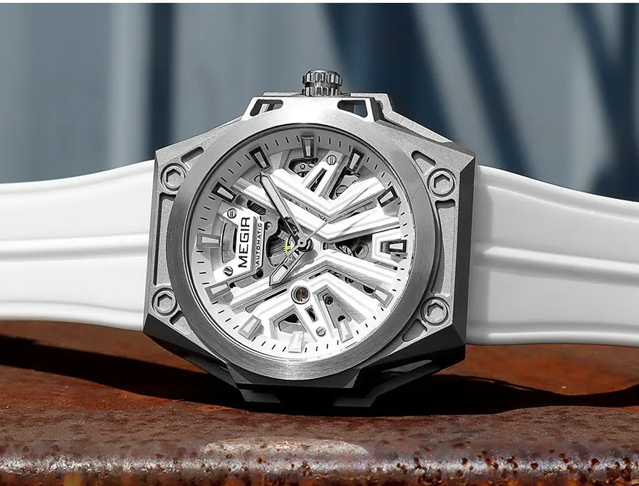 MEGIR 8603 Fashion Automatical Watch for Men Military Sport Waterproof Mechanical Skeleton Dial Silicone Strap Watches for Man