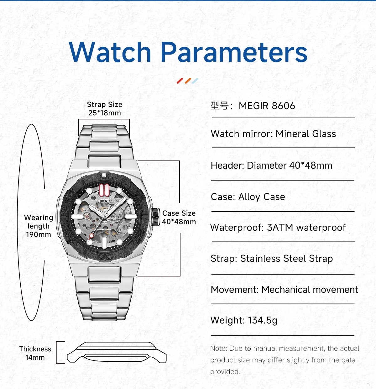 MEGIR Brand New Fashion Automatic Date Quartz Watch for Men Stainless Steel Waterproof Mechanical Mens Watches Relogio Masculino