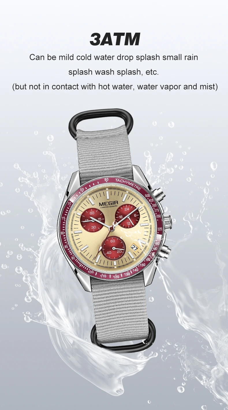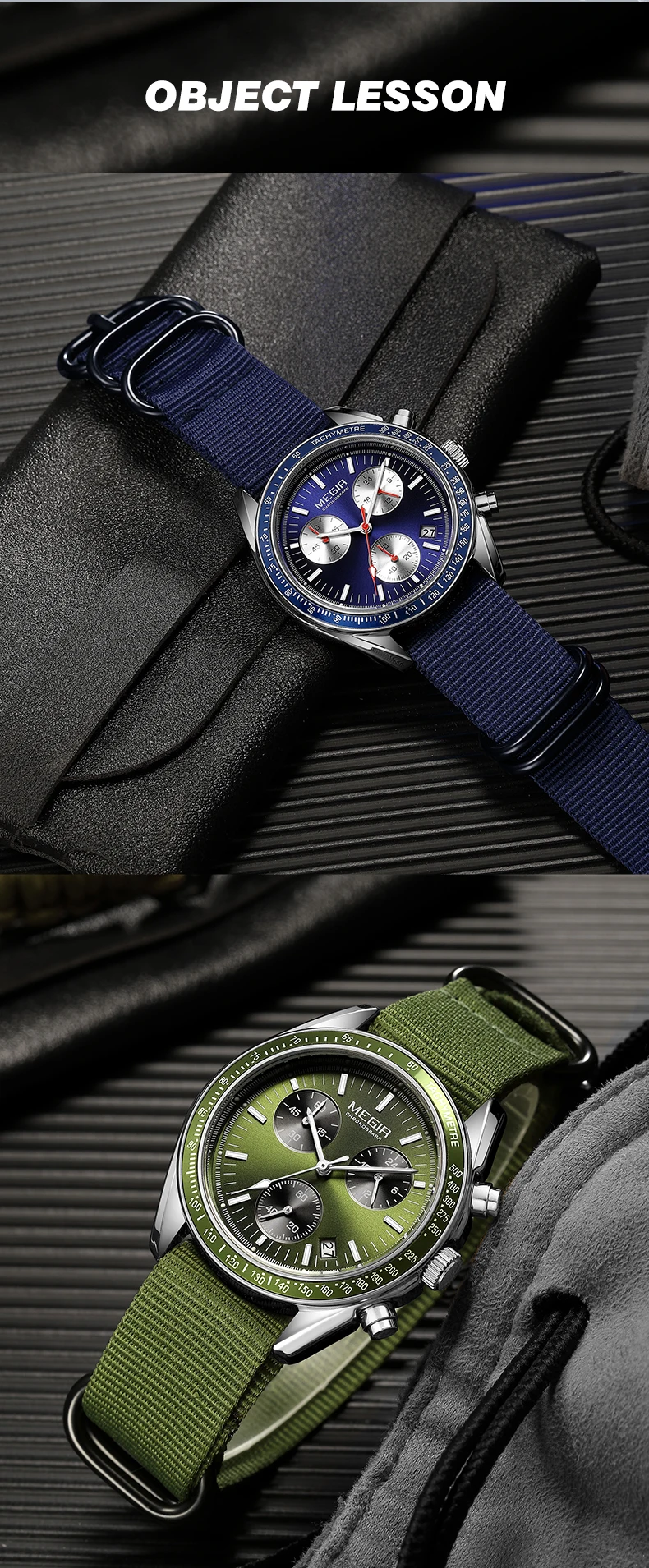 MEGIR Men's Watch Fashion Canvas Sports Wristwatch Waterproof Quartz Military Chronograph Date 24-hour Display Reloj Hombre 2247