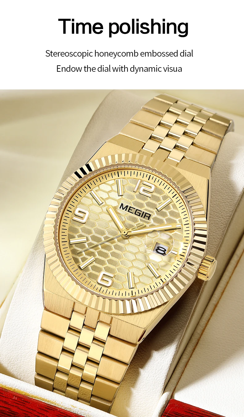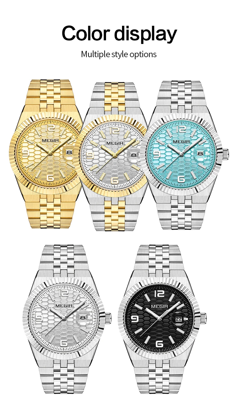MEGIR Quartz Watch for Men Fashion Simple Business Style Analog Wristwatch with Stainless Steel Strap Date Luminous Hands