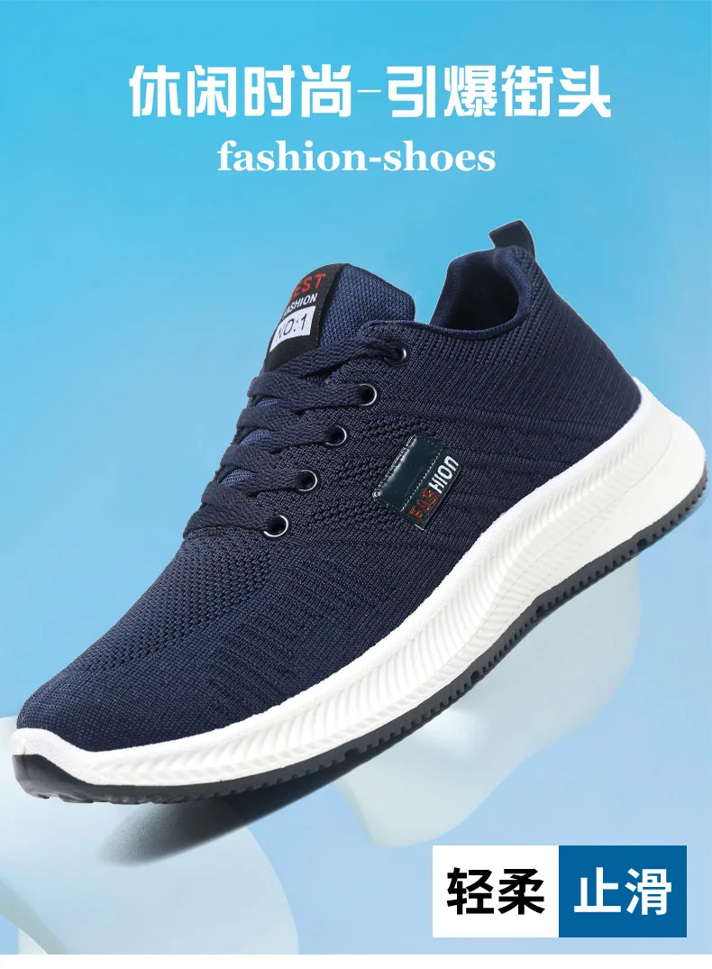 Men's woven mesh sports single shoes with comfortable, breathable and trendy casual running shoes