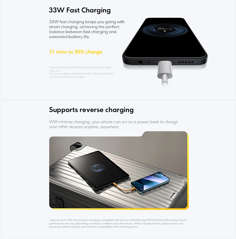Battery------6000mAh (typ) battery, 33W Fast Charging