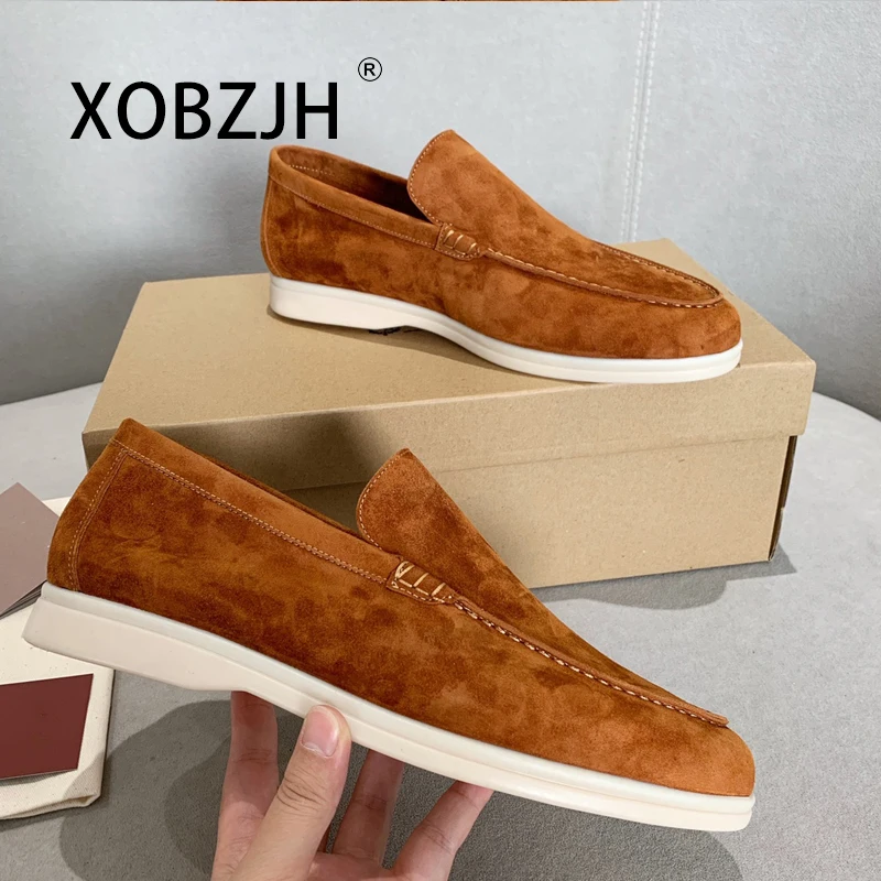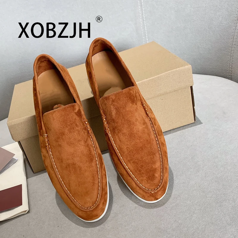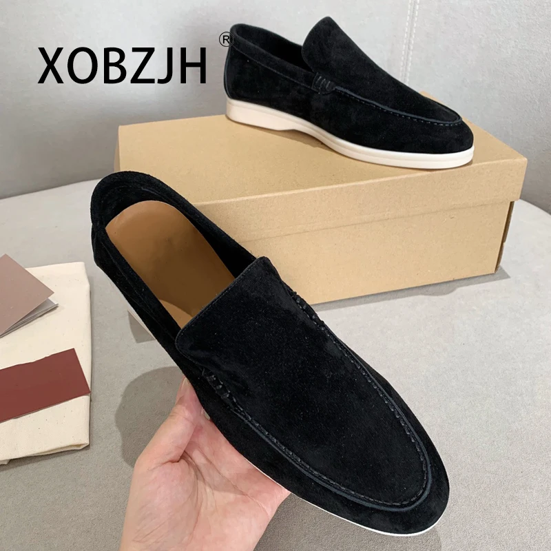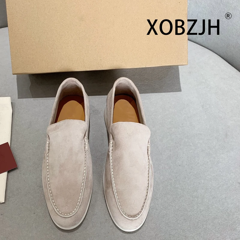 No Logo-Luxury Designer Suede Leather Men's Loafers Spring and Autumn Casual Soft Sole High Quality Cashmere Trends Flat Shoes