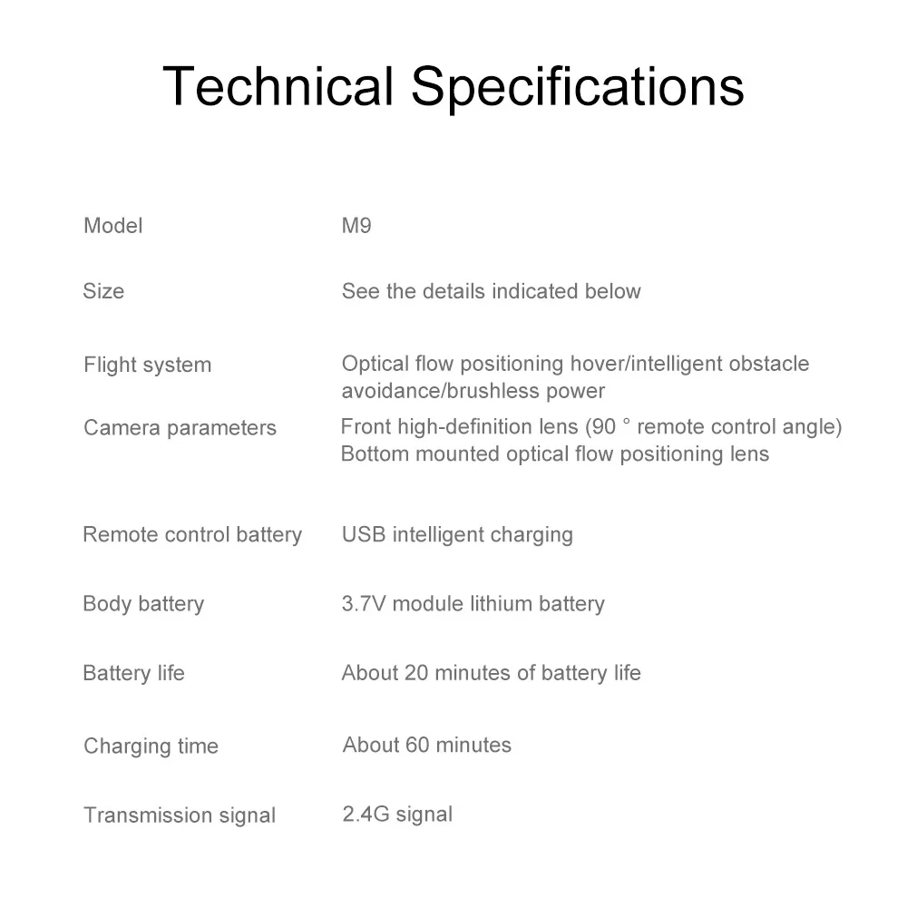 Product model | M9 | Fuselage folding size | 15.2*11.8*6.8CM |