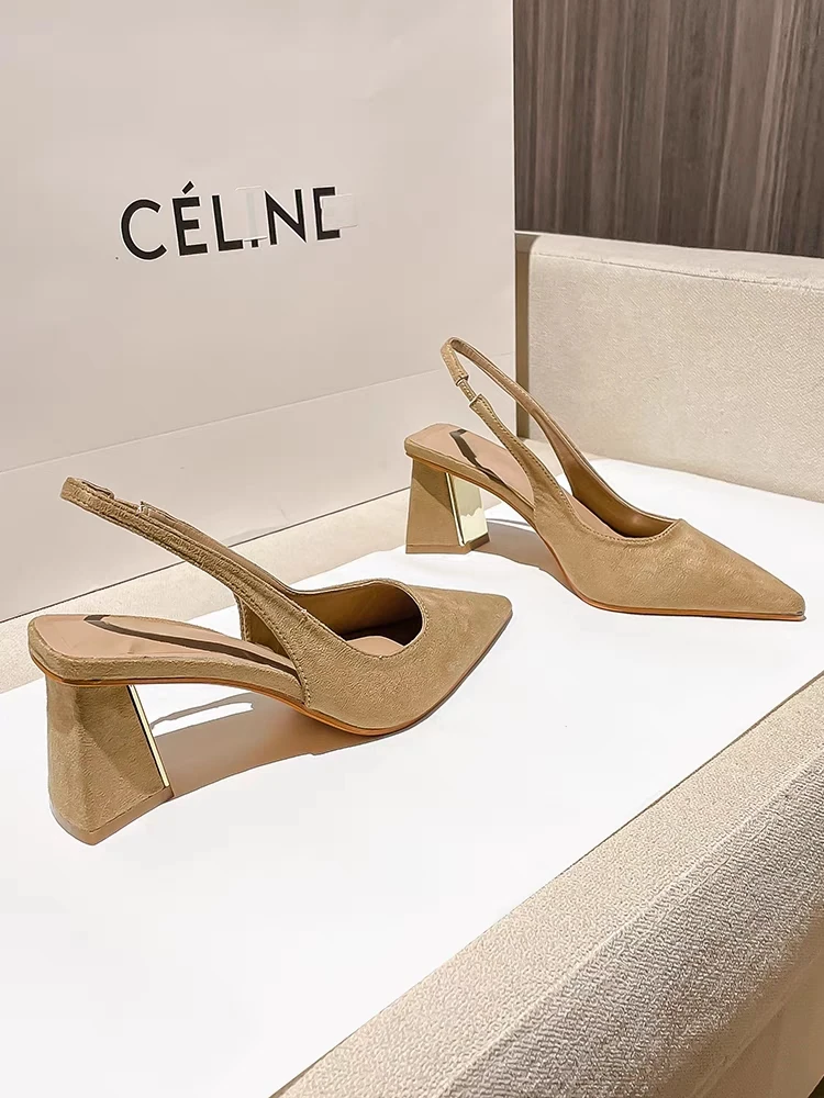 Pointed High-heeled Single Shoes Femininity 2025 New Spring and Summer Thick Heel Simple Back Empty Bag Head Sandals