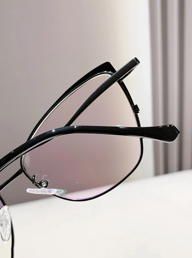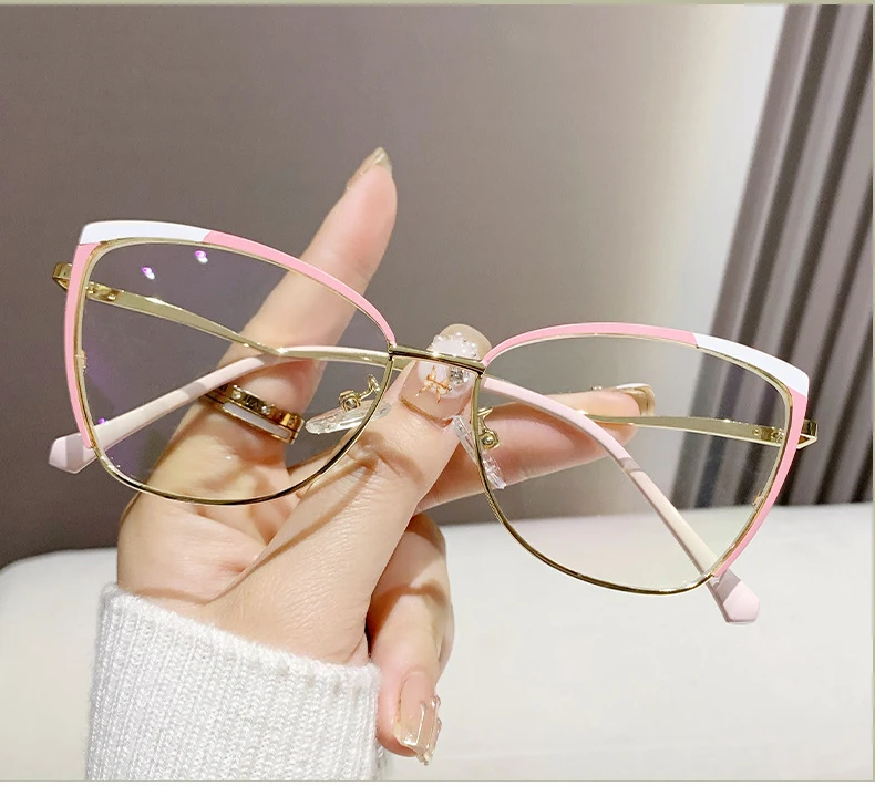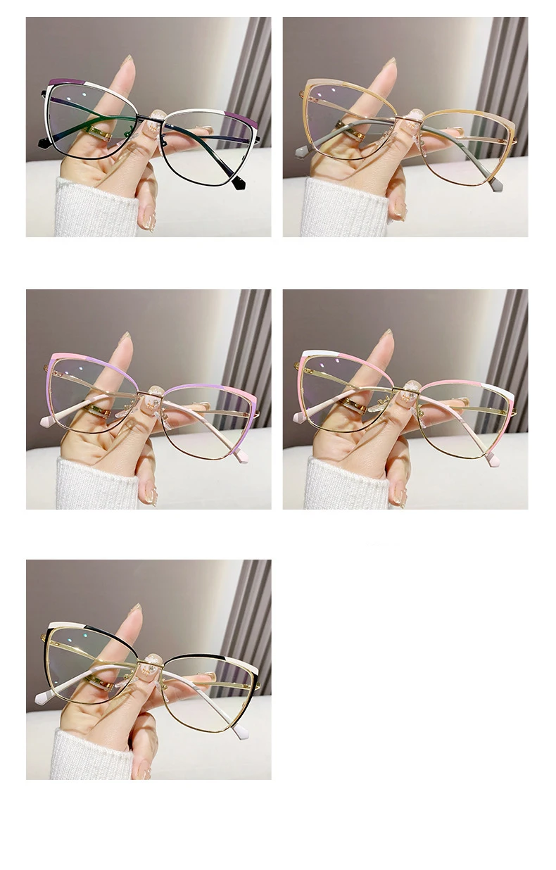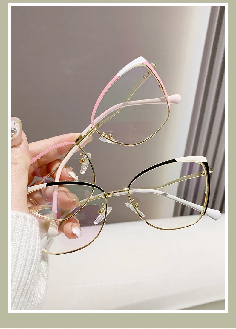 R57481 Fashion Metal Cat Eye Anti Blue Light Glasses Frame Stylish Business Presbyopia Eyeglasses Customizable Prescription