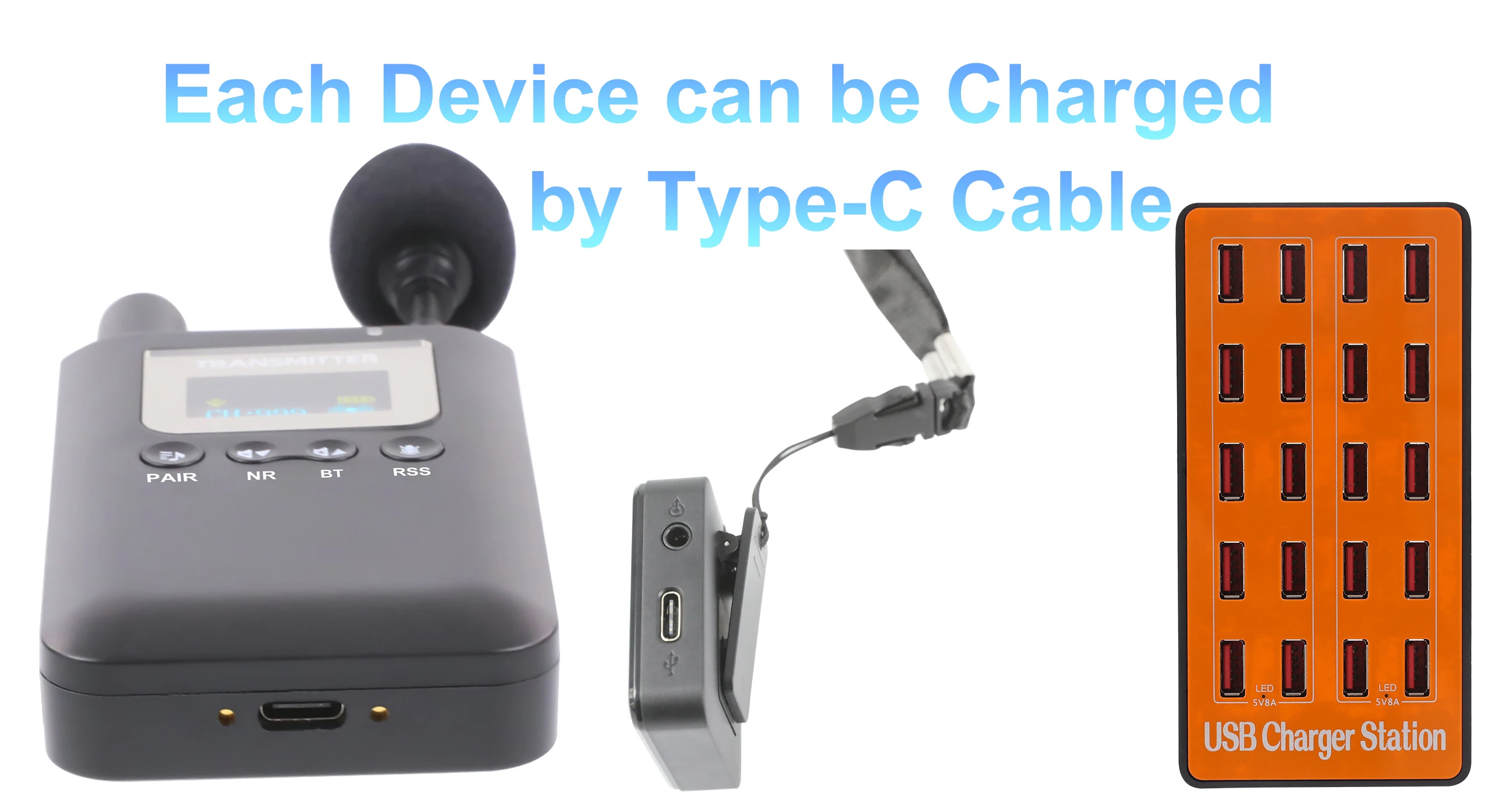 1Charger for 20 receivers.