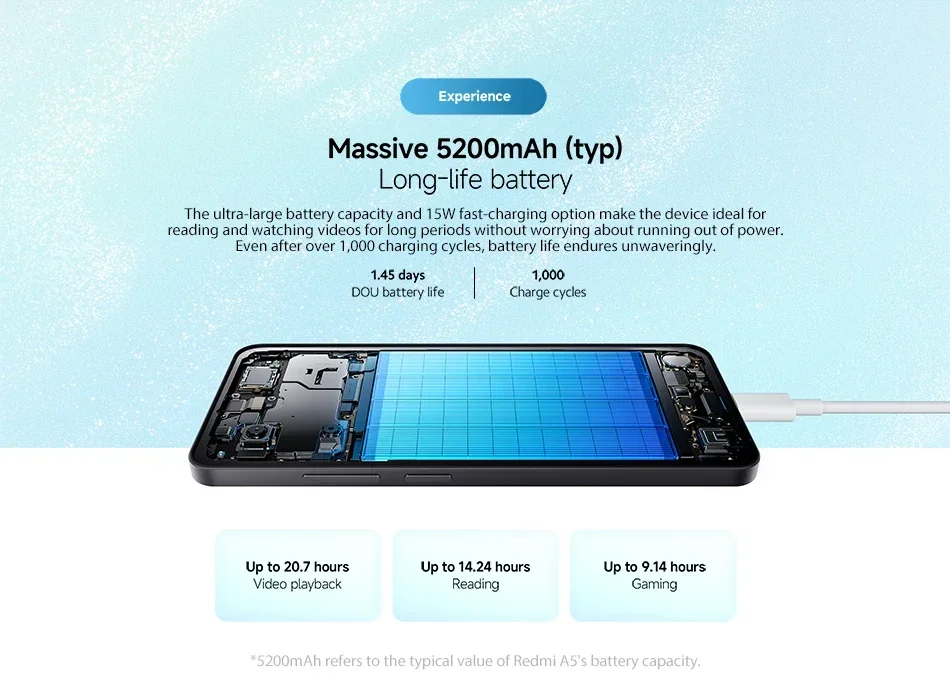Battery --------- 5200mAh battery, Supports 15W fast charging