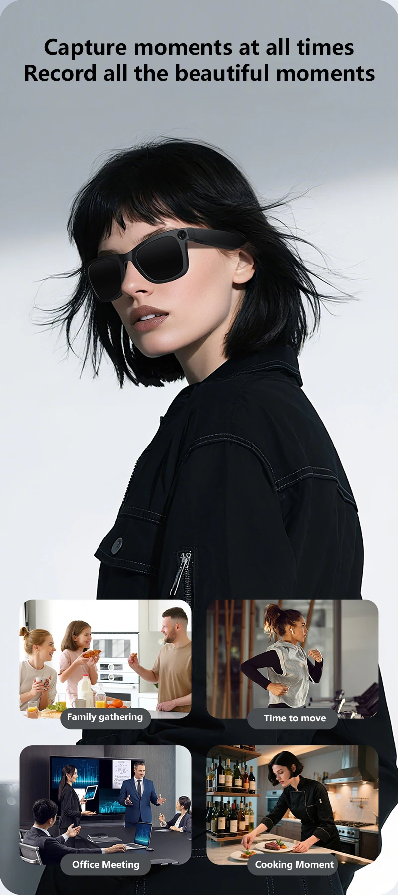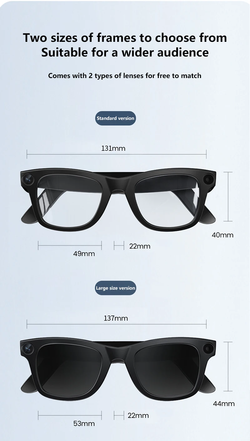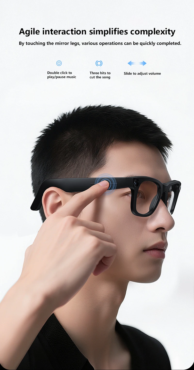 Effortless Interaction: Control your glasses intuitively with a simple swipe touch sensor on the right temple and two convenient physical buttons. Smart Wear Detection automatically pauses/resumes audio when you put on or take off the glasses.