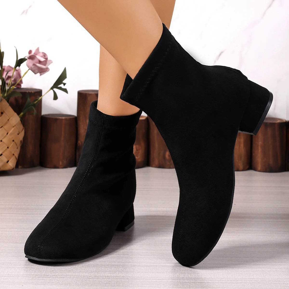 2026 New Mid Heels Women Suede Ankle Boots Winter Fashion Chunky Shoes for Woman Elegant Shoes Snow Chelsea Short Boots De Mujer