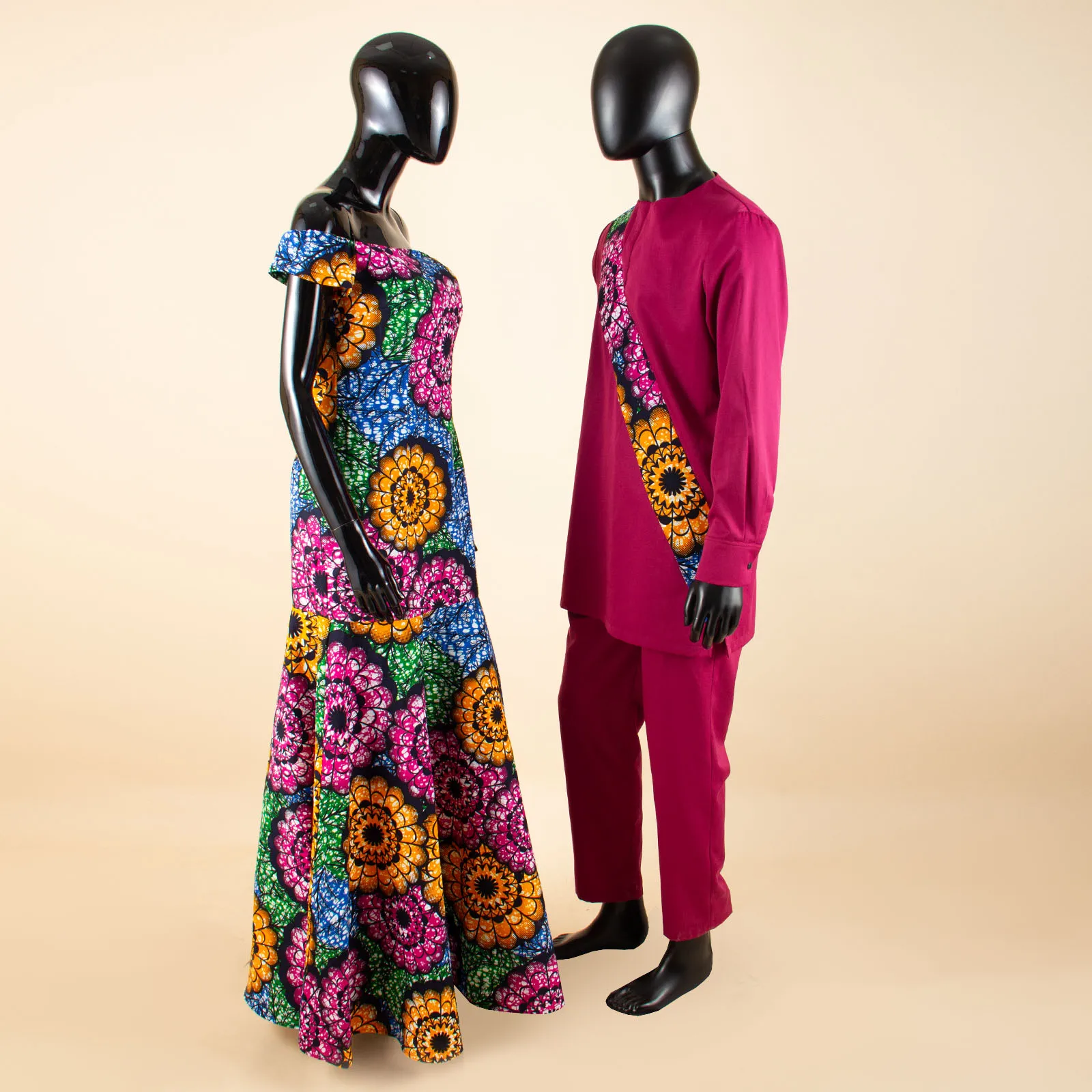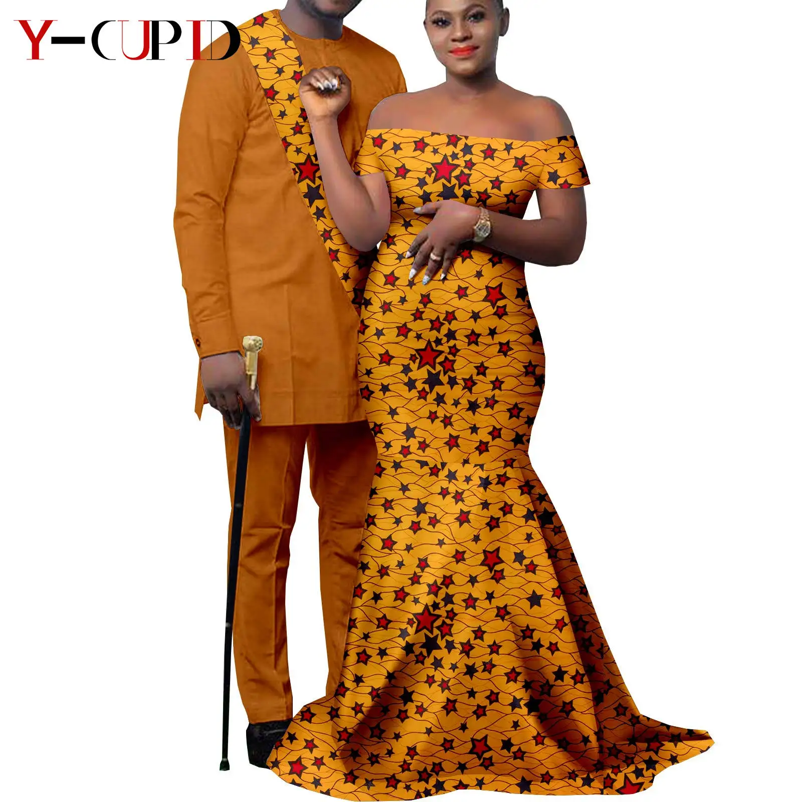 African Clothes for Couples Bazin African Print Long Dresses for Women Match Men Outfits Dashiki Top and Pants Sets Y22C023