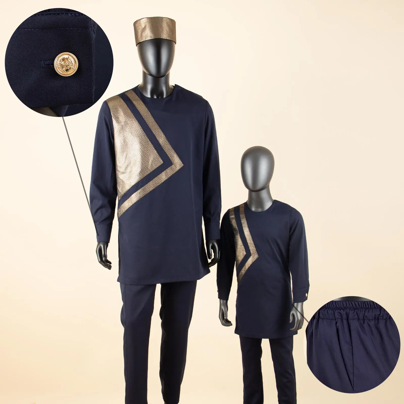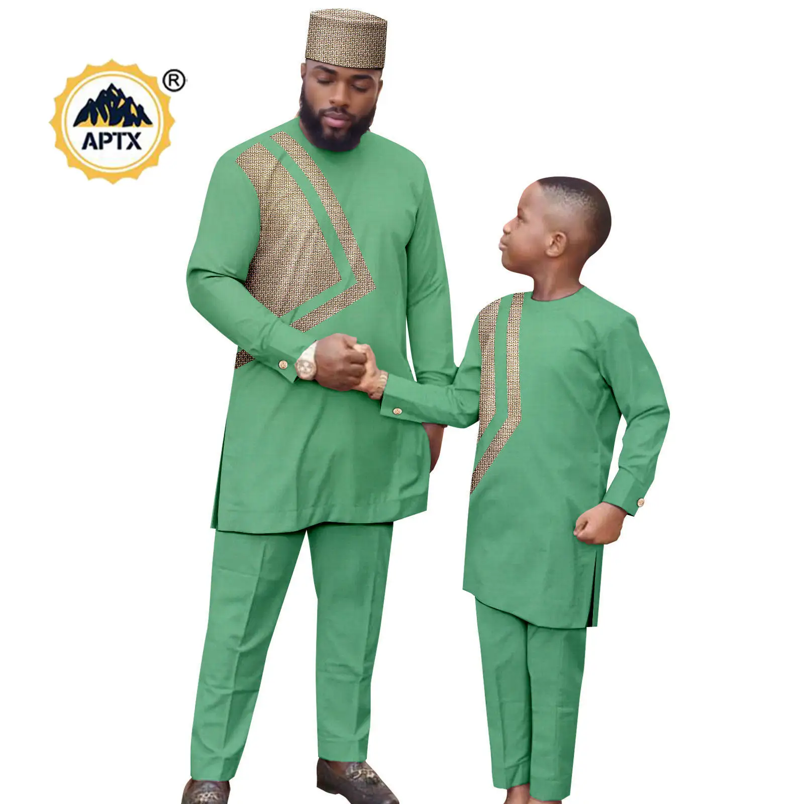 African Clothes for Family Dashiki Men Outfits Hat Top Shirt and Pant Sets Bazin Riche Father and Son Children Outwear 24F024