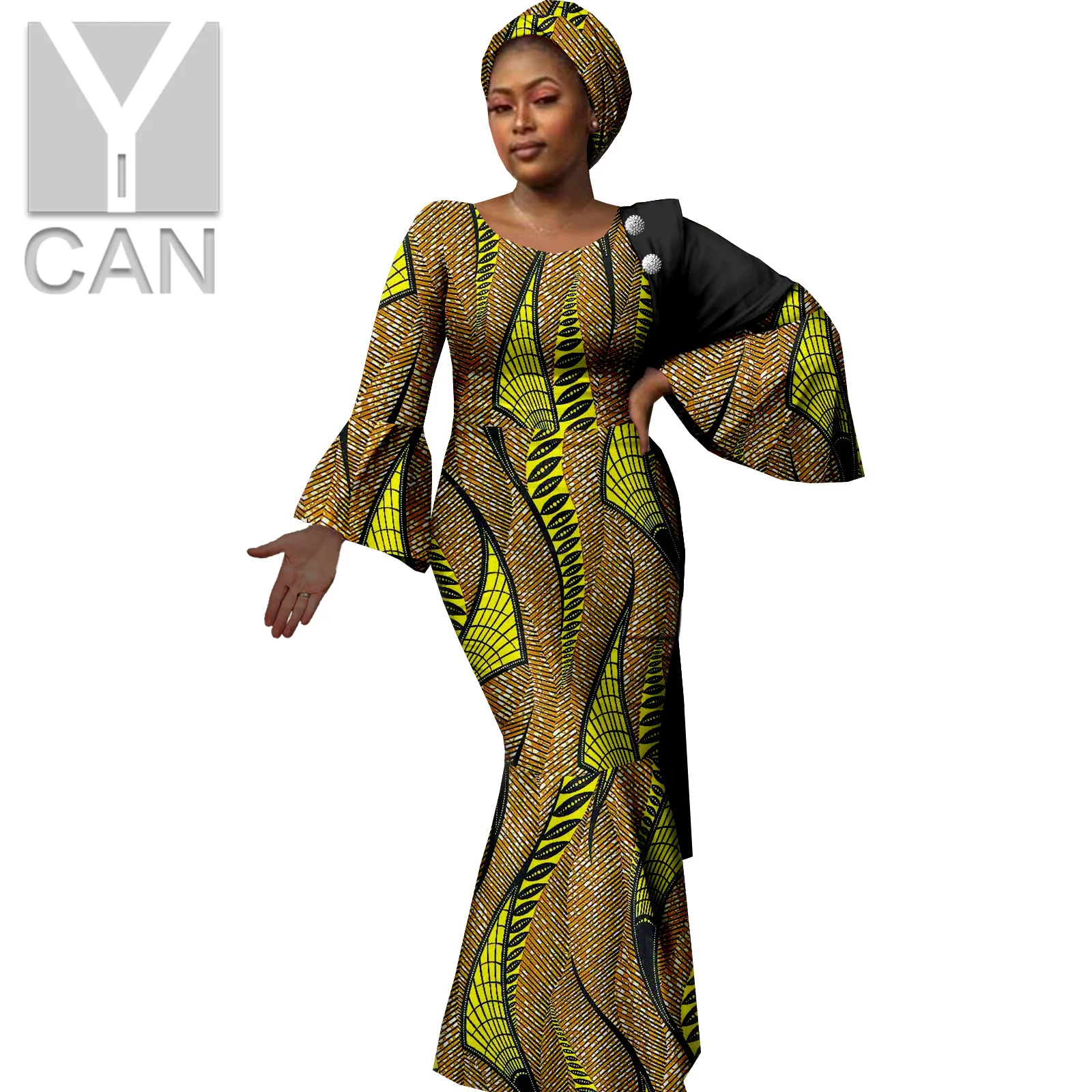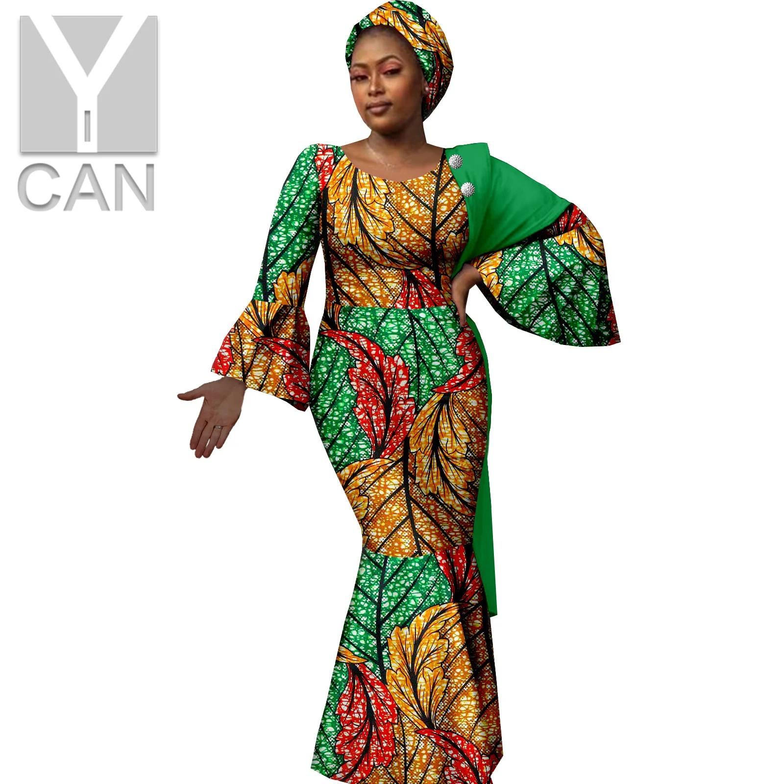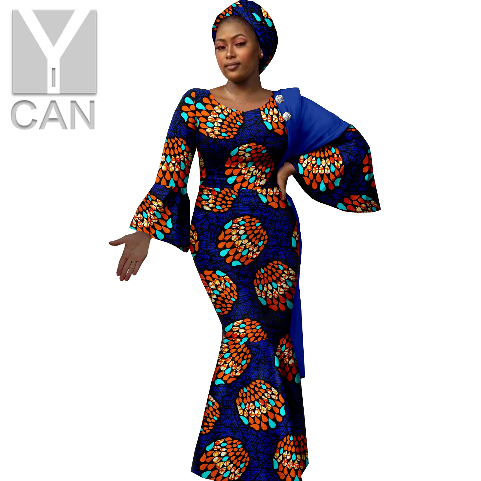 African Women Dresses Dashiki Ankara Print Slim Long Dress with Headwrap Bazin Riche Ladies Outftis Party Vestidos Y2225023