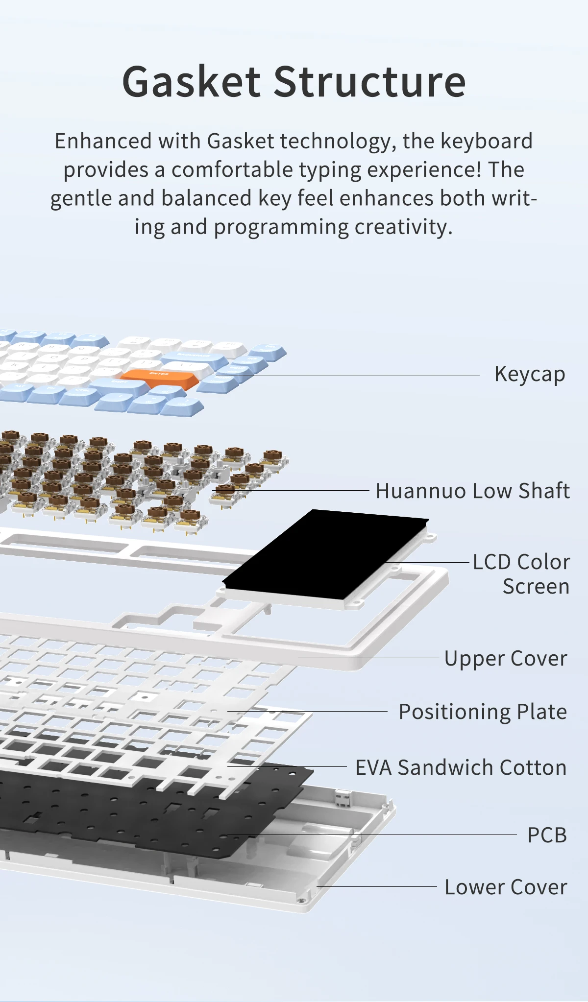 Enhanced Typing Experience: Elevate your typing experience with the AKP815's gasket keyboard design. Sandwich cotton reduces hollow sound, providing softer typing feel. Plus, adjustable stands ensure ergonomic typing angles for added