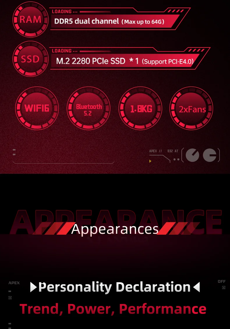 Cybertruck Gaming Mini PC AMD RYZEN5 7640HS/RYZEN7 8845HS Support WIN10 LINUX with 2xDDR5 HDMI Full-funtion TYPE-C Computer