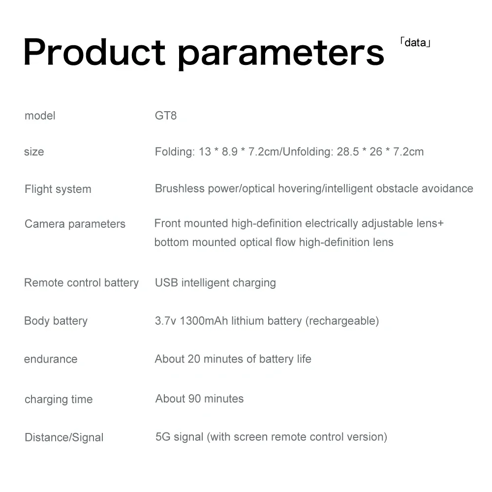 Camera options: 5G WiFi 4K HD/5G WiFi 6K/5G WiFi 8K