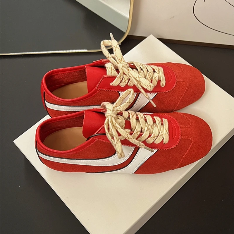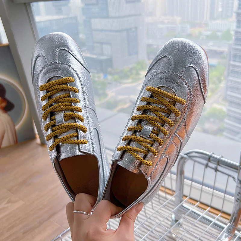 Material: Genuine Leather Upper, Cow LeathernOutsole Material: Durable RubbernClosure Type: Secure Lace-upnFit: True to Size, Comfortable FitnSeason: Versatile for Spring/AutumnnDesign: Retro Large Size with Mixed Colors and a Skateboard Shoe Typennn|German Training Shoes For Women|nn**Unmatched Comfort and Style**nStep into the world of comfort and style with the German Training Shoes Women 2025, a pair of sneakers that is not only a testament to fashion but also a statement of quality. The genuine leather upper and cow leather material offer a luxurious feel, while the rubber outsole provides unmatched durability and traction. The lace-up closure ensures a snug fit, making these shoes perfect for women who value both style and comfort.nn**Versatility for Every Occasion**nThe German Training Shoes Women are designed to be versatile, making them an excellent choice for various occasions. Whether you're heading to the gym, running errands, or enjoying a casual day out, these sneakers will keep you comfortable and stylish. The solid pattern and mixed colors add a touch of elegance, while the flat heel height ensures you can wear them all day without any discomfort.nn**Tailored for the Modern Woman**nUnderstanding the needs of the modern woman, these sneakers are crafted to fit true to your size, ensuring you find the perfect match for your foot. The upper-genuine leather type, cow leather, is not only durable but also breathable, making it ideal for the spring and autumn seasons. The lining material, canvas, provides additional breathability, making these shoes a practical choice for everyday wear. With the German Training Shoes Women, you can enjoy a combination of fashion and function that is tailored specifically for the modern woman.