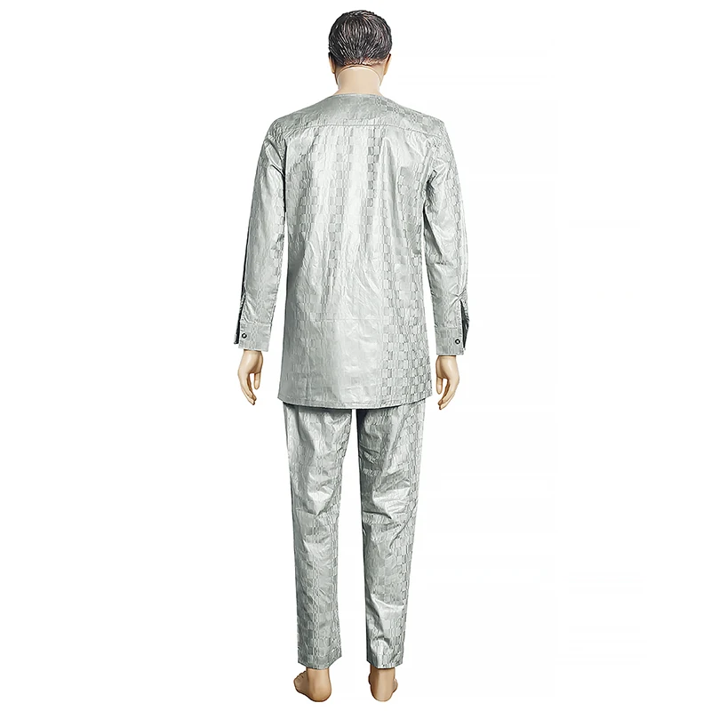 H&D African Clothes For Men Dashiki Top Pant 2 Pieces Outfit Set Riche Grey Embroidery Shirt Trouser Rich Bazin Original Muslim